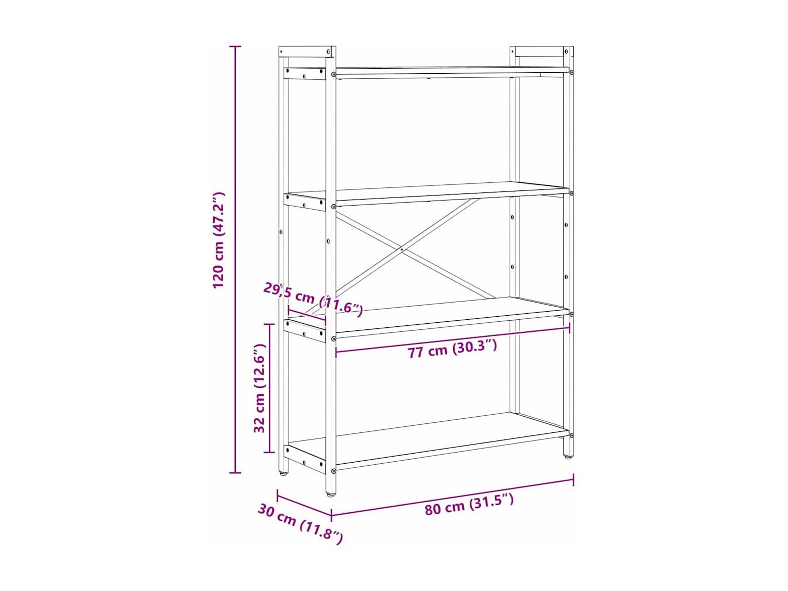 Bücherregal aus Sonoma-Eiche, 80 x 30 x 78,5 cm, Holzwerkstoff und Eisen