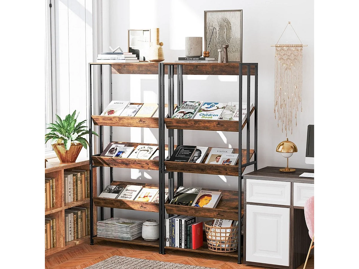 5-stufiges Bücherregal mit Rahmen aus Kohlenstoffstahl Kippschutz & verstellbaren Fußpolstern Rustikales Braun