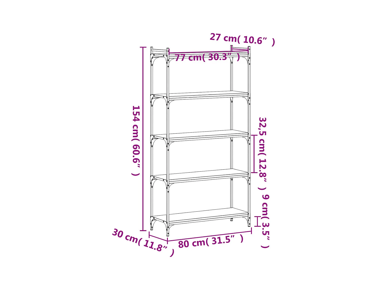 Bücherregal mit 5 Etagen, Sonoma-Grau, 80 x 30 x 154 cm