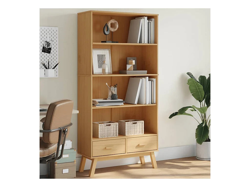 Bücherregal OLDEN 4 Fächer Braun Massivholz Kiefer