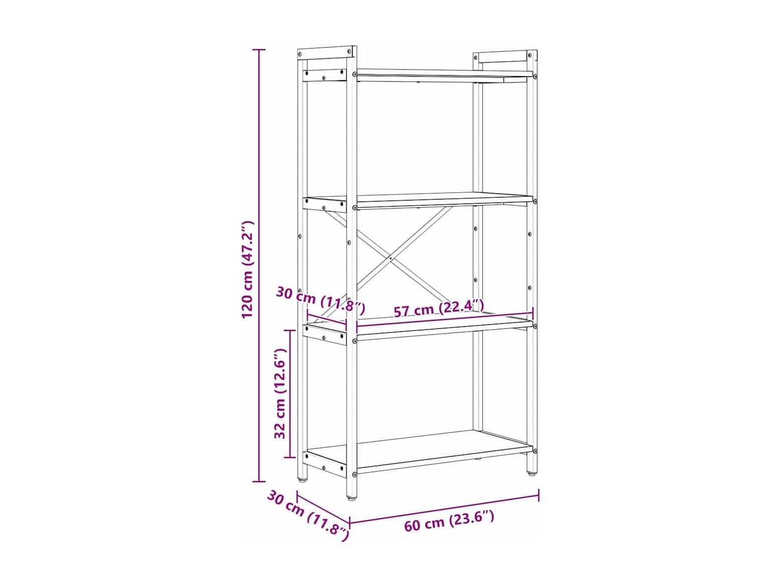 3-stöckiges Bücherregal Sonoma Eiche 60x30x60 cm