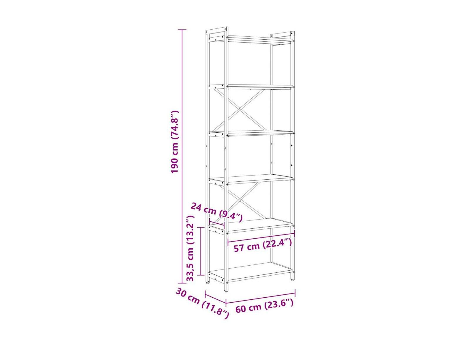 Bücherregal Sonoma grau 60 x 30 x 188 cm Holz und Stahl