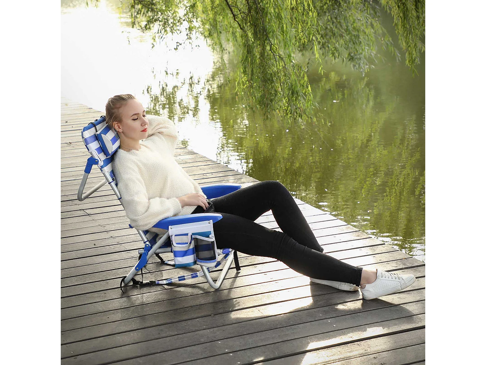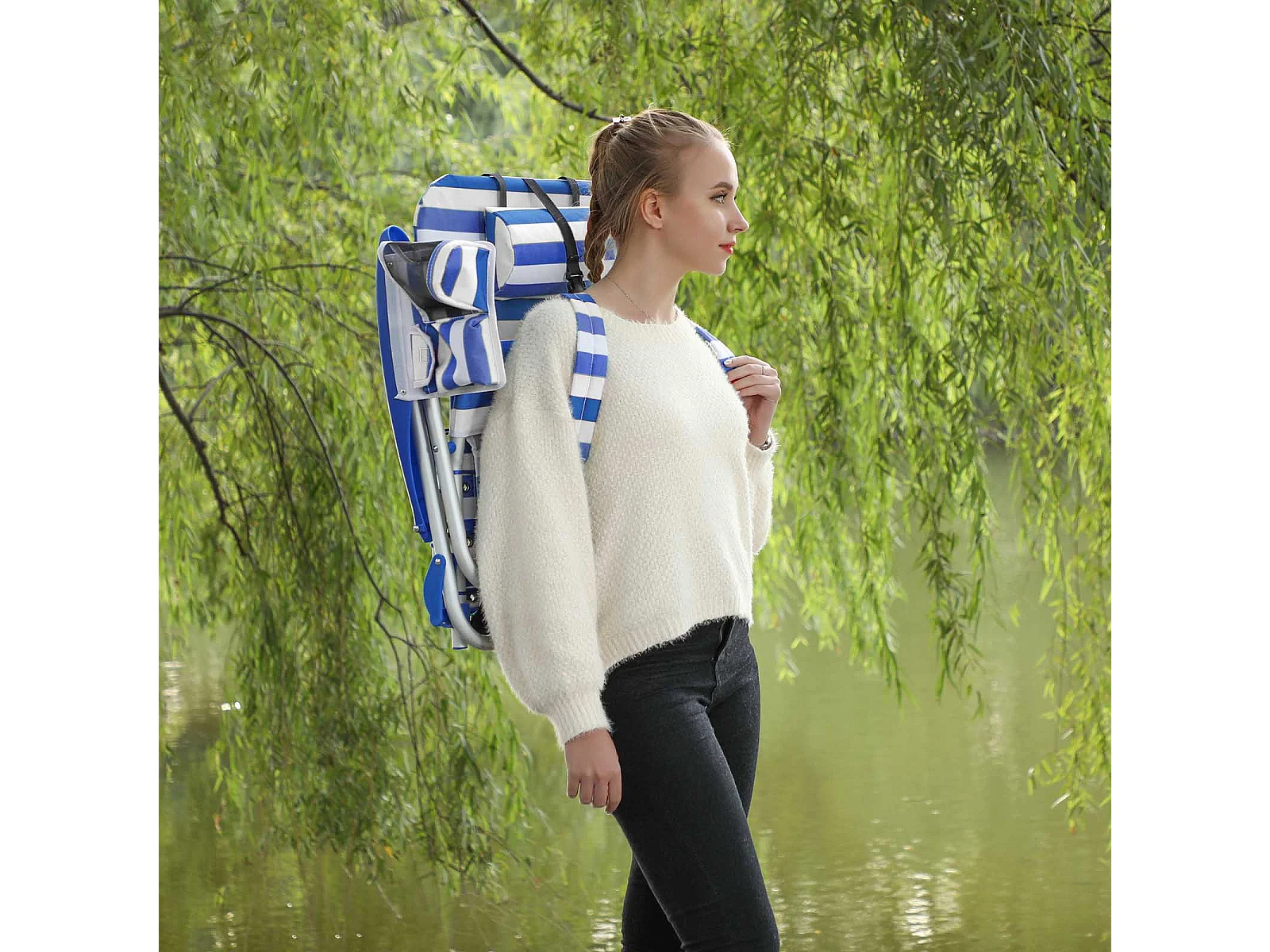Campingstuhl für 2 Personen Klappstuhl mit Getränkehaltern & Armlehnen & Tragetasche Blau