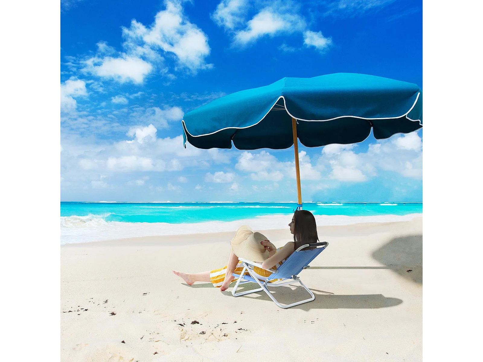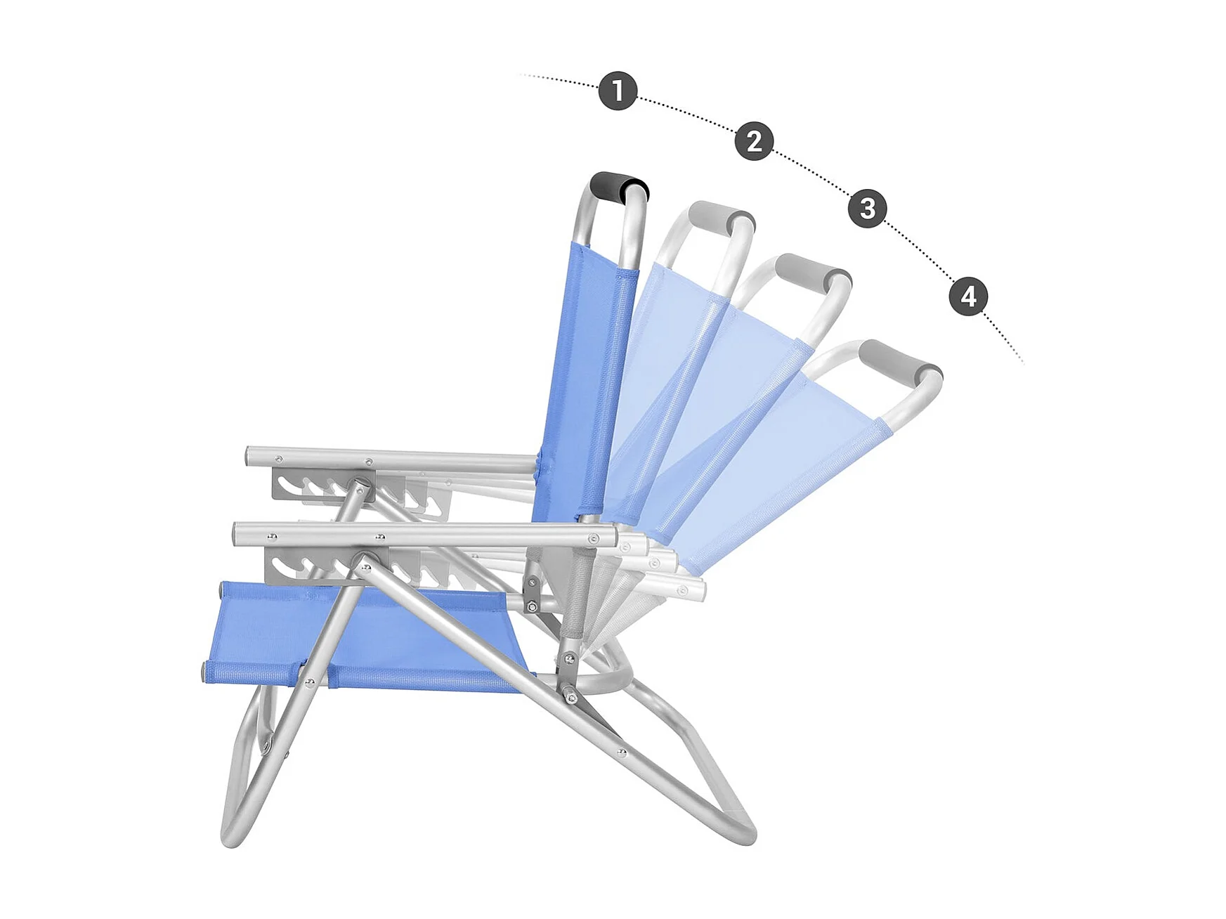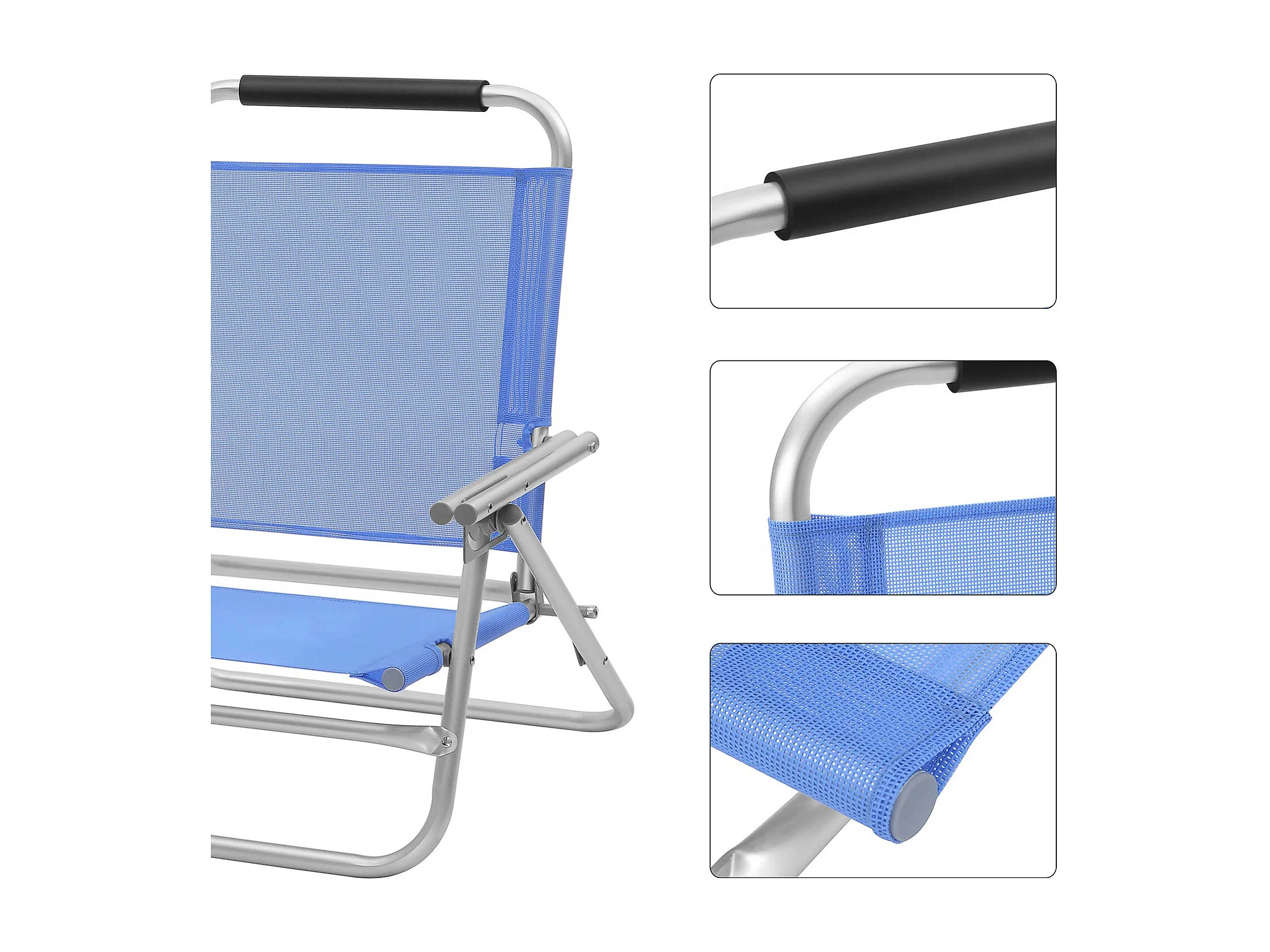 Campingstuhl SucceBuy Klappbar, 4 Verstellbare Positionen, Tragbare Verstellbare Liege für Erwachsene, mit Fußstütze, Kopfstütze, Mesh-Stoff, Blau
