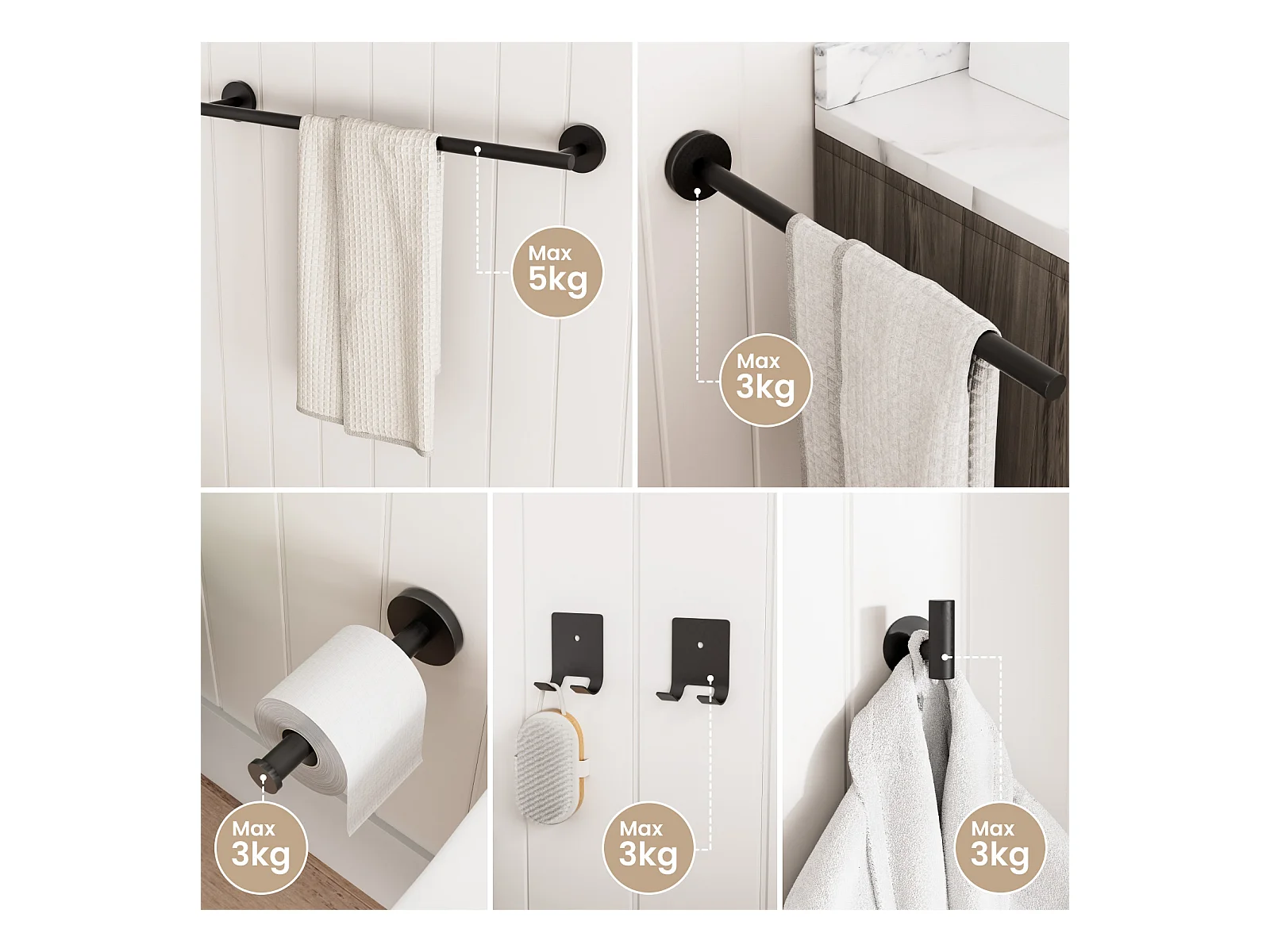 Cecipa MAX Schwarzer Wandhandtuchhalter fürs Badezimmer, Edelstahl, Toilettenpapierhalter, Badezimmer-Hängeset, 4-teilig