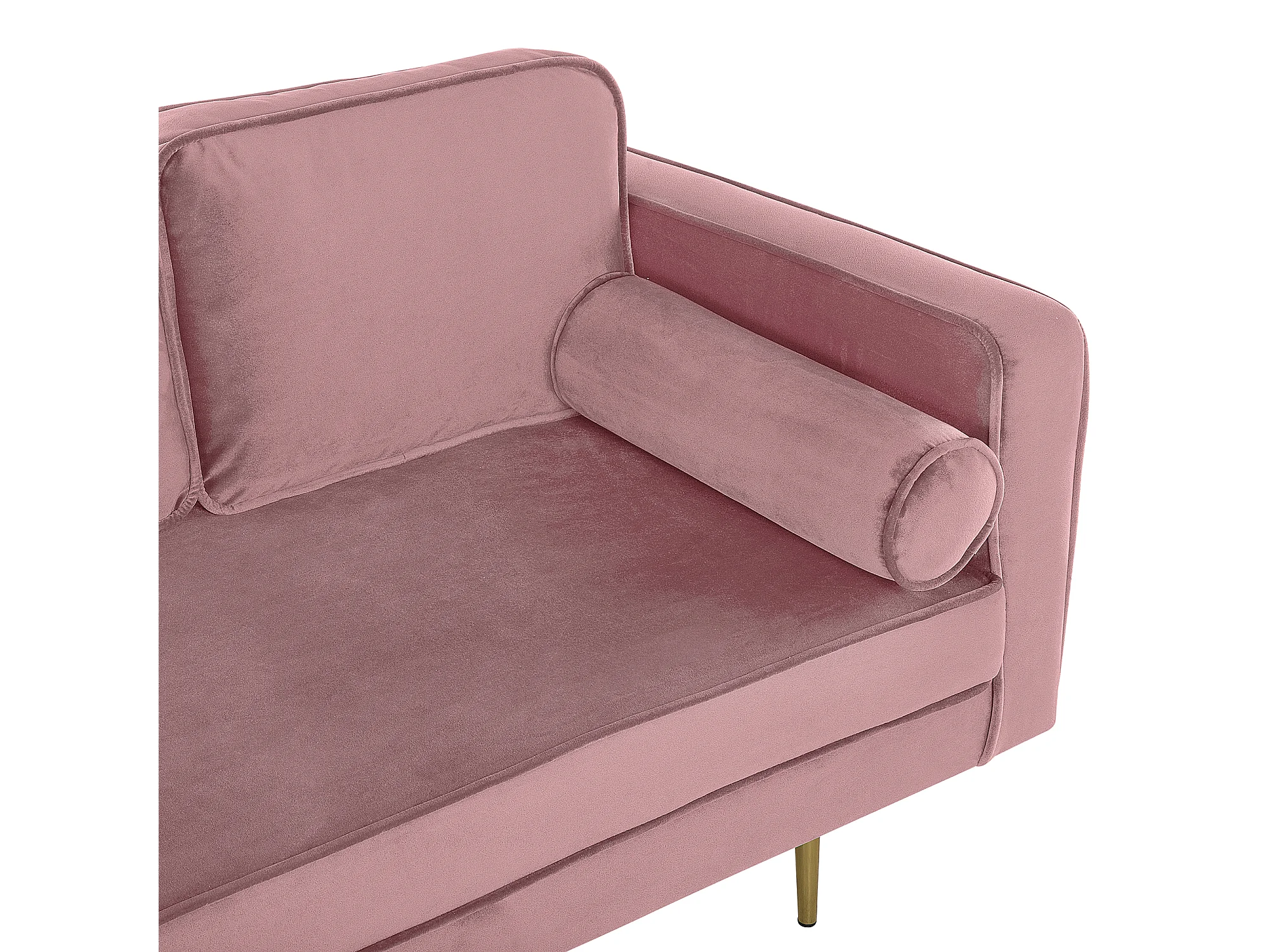 Chaiselongue Samt rosa rechts goldenes Gestell mit Nackenrolle modern Miramas