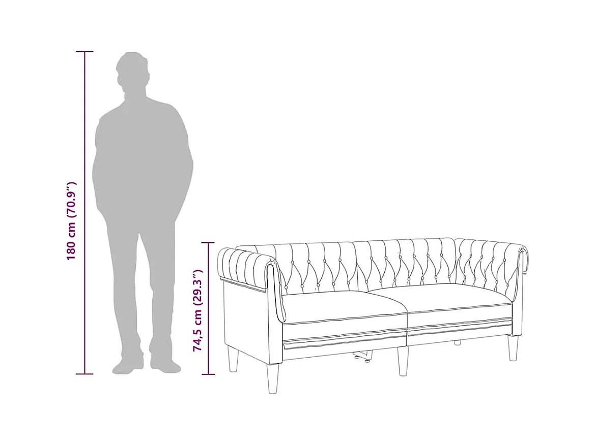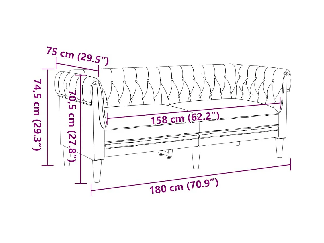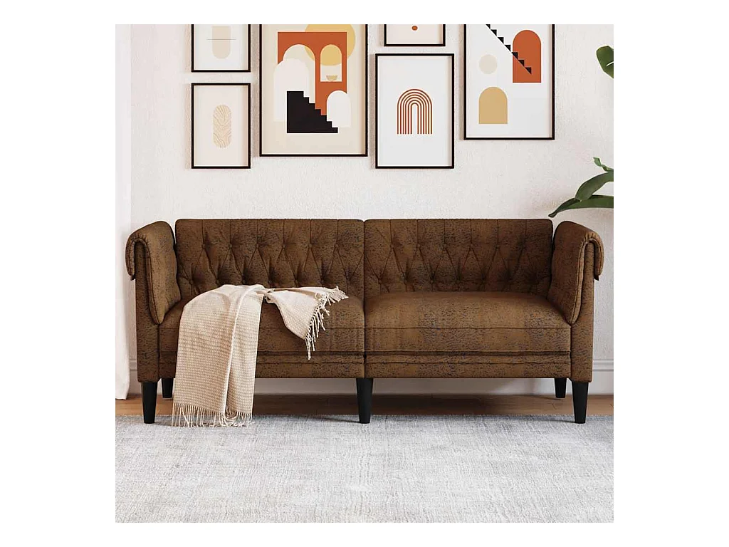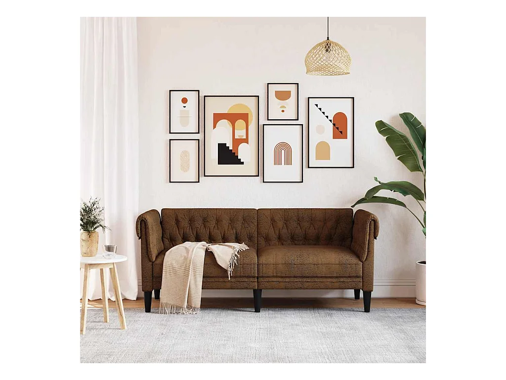 Chesterfield 2-Sitzer-Sofa aus braunem Stoff