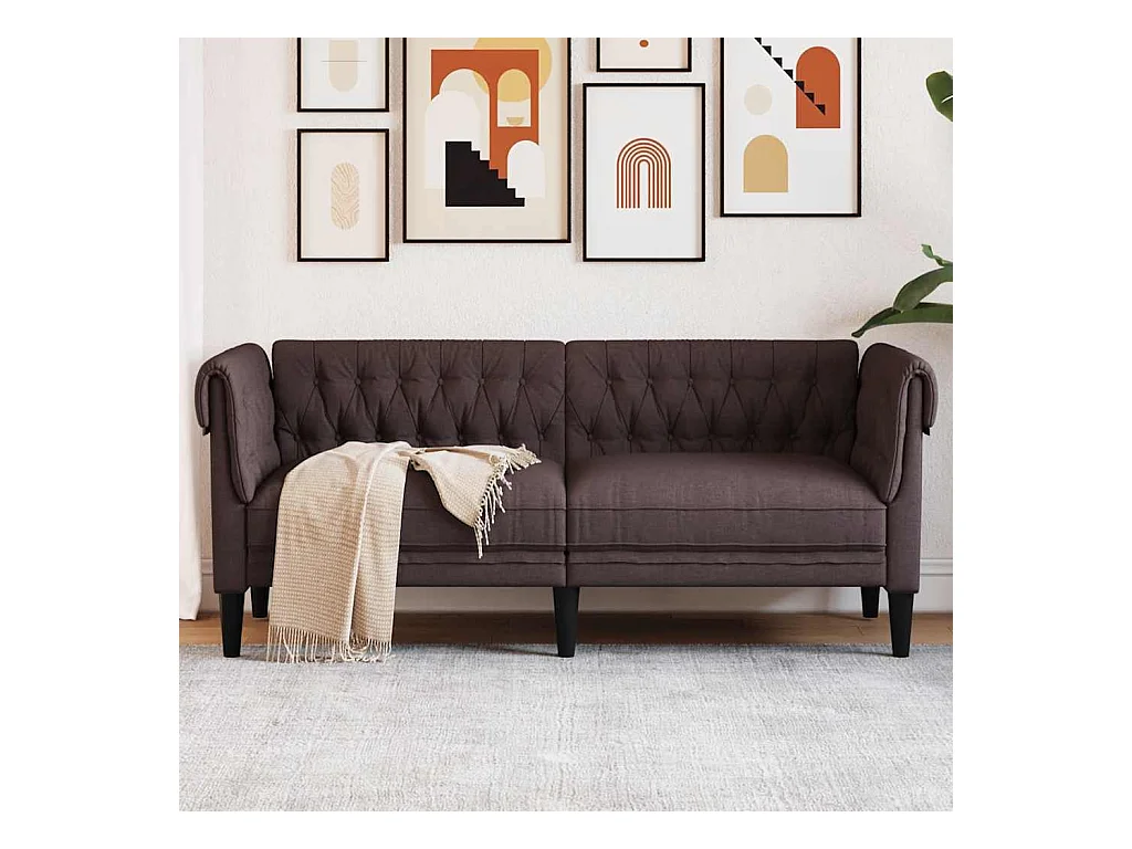 Chesterfield 2-Sitzer-Sofa aus dunkelbraunem Stoff