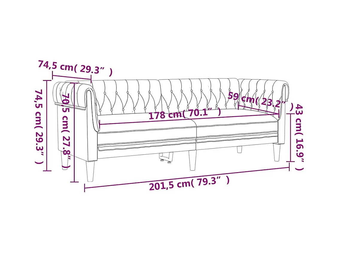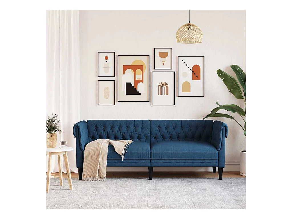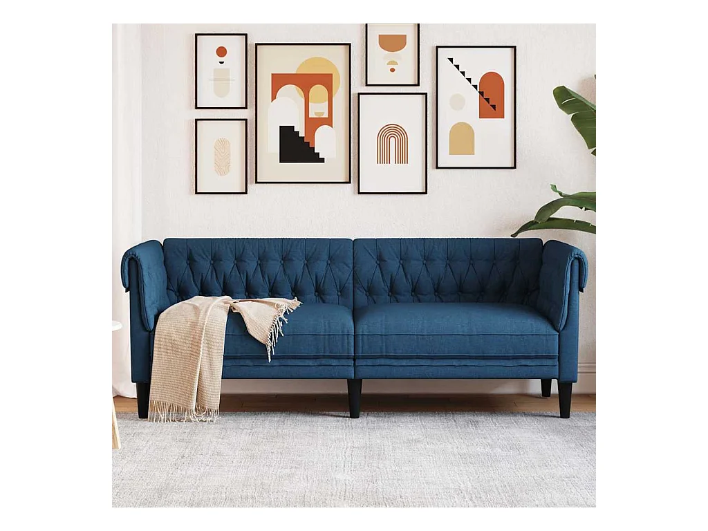 Chesterfield 3-Sitzer-Sofa aus blauem Stoff