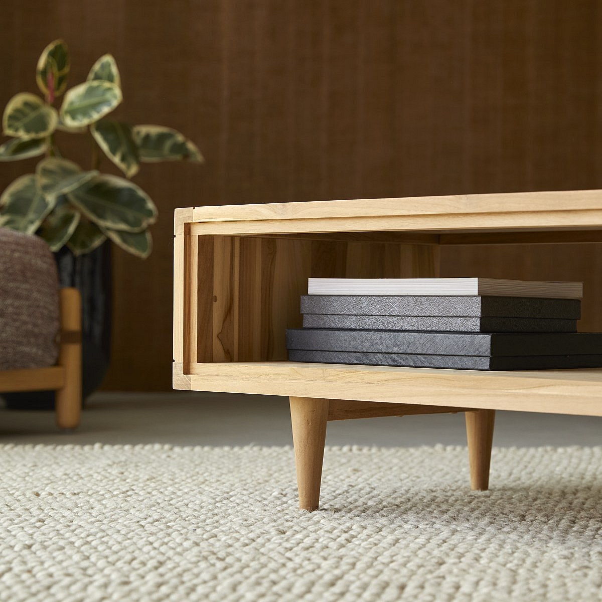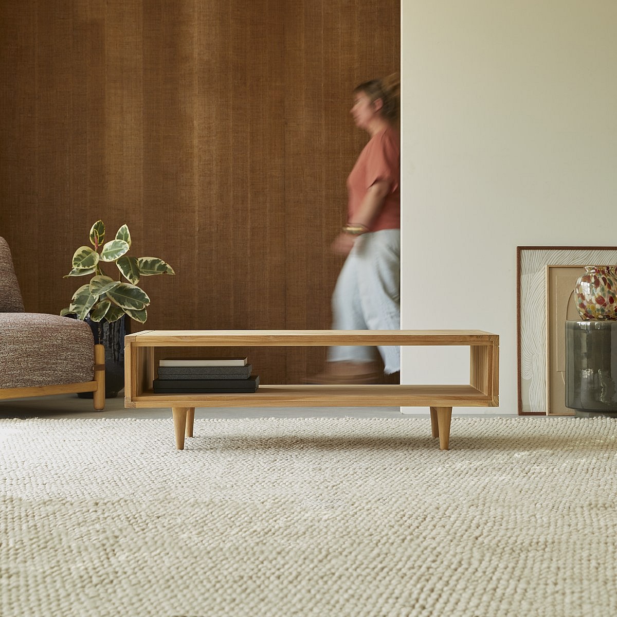 Couchtisch 120 x 50 aus unbehandletem Teak skandinavisches Design natürlich