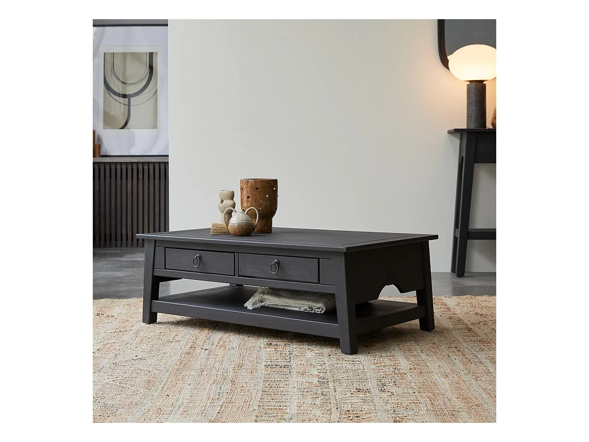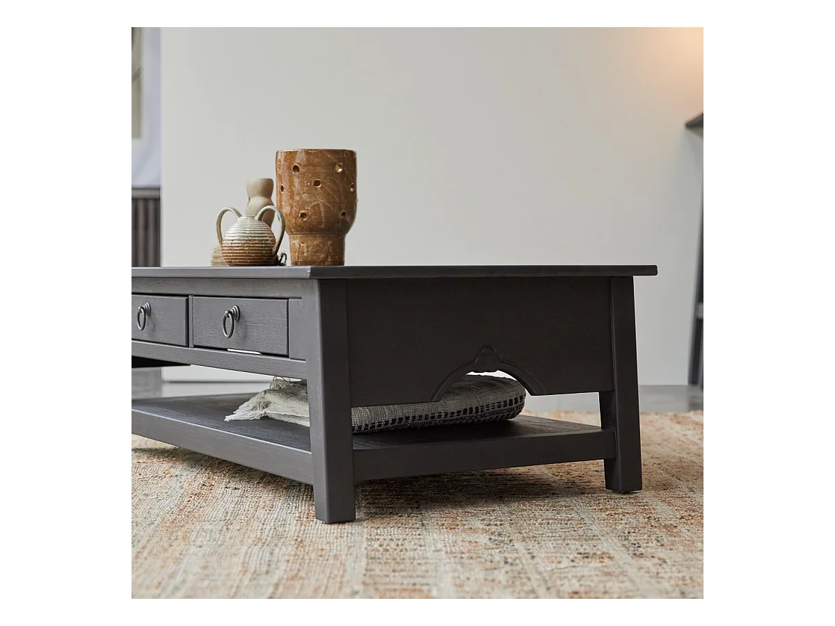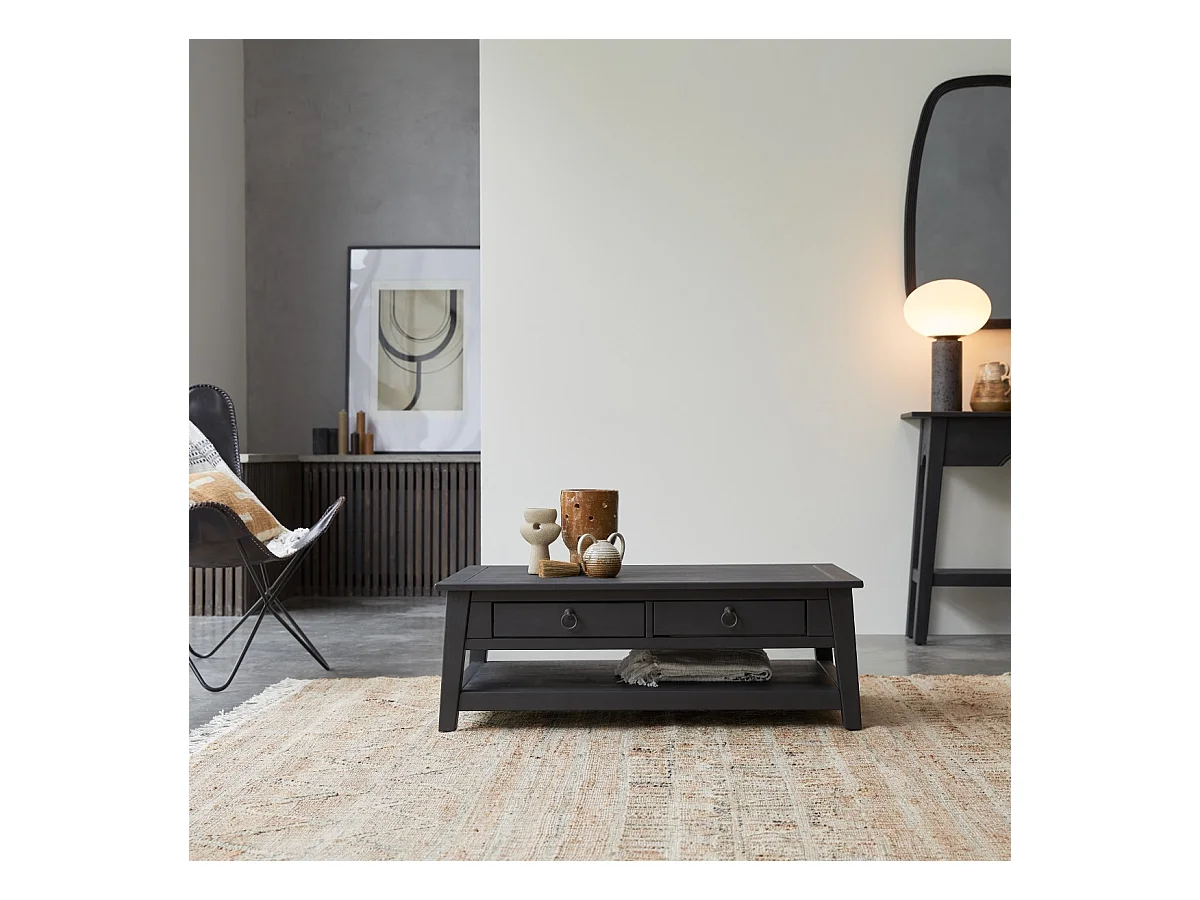 Couchtisch aus Kiefer massiv Thaki black 100 × 60