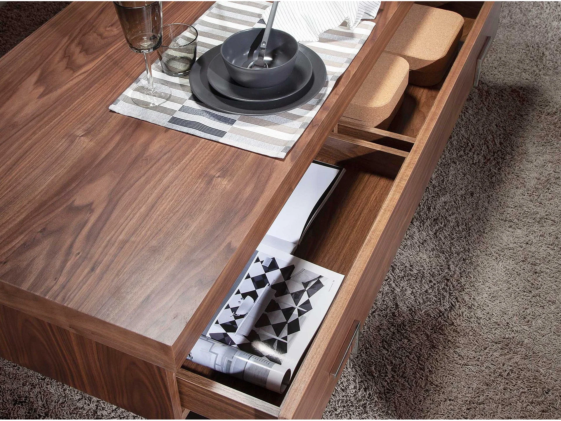 Rechteckiger Couchtisch Nussbaum und verchromter Stahl 2099 ANGEL CERDA