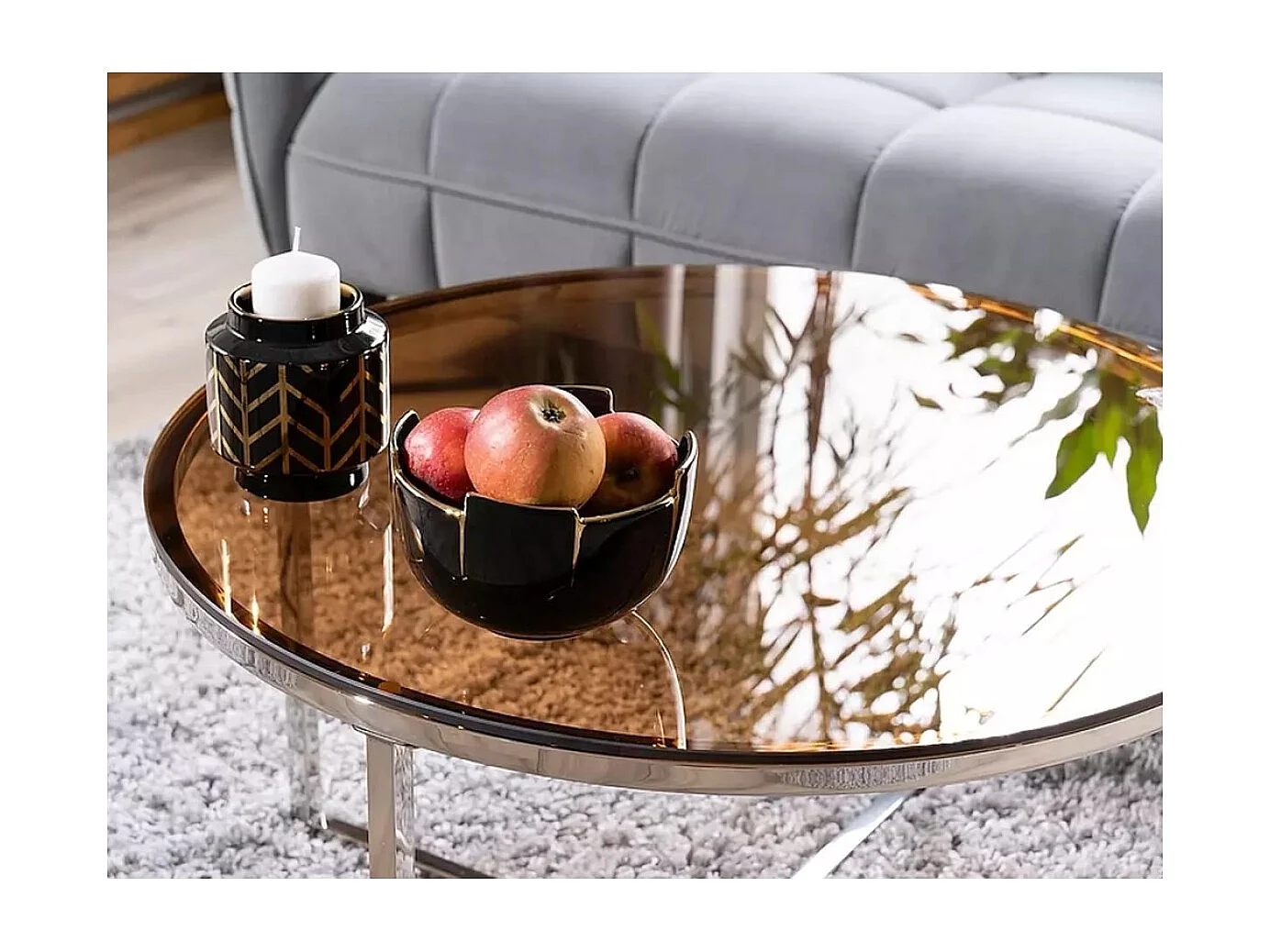 Couchtisch Selena/Glas/Edelmetall/grau