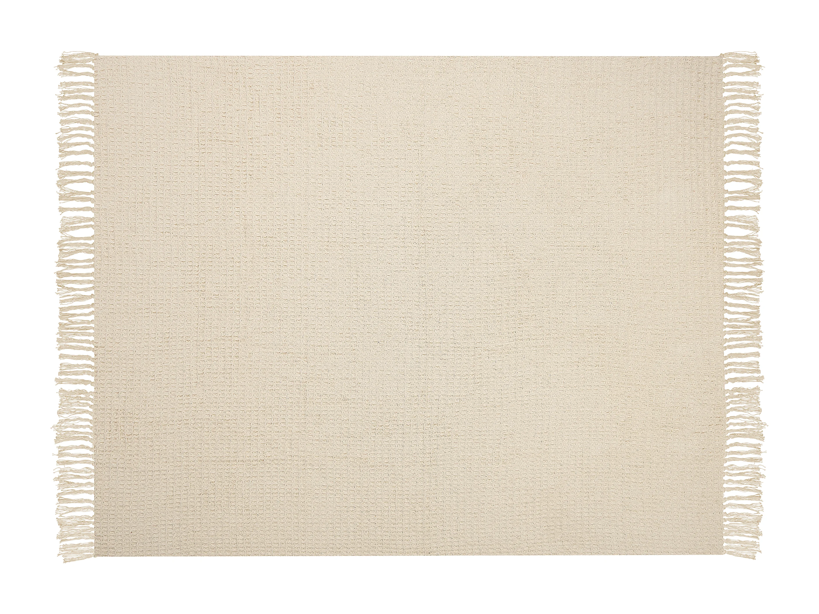 Decke Baumwolle beige 125 x 150 cm mit Fransen Wohndecke Überwurf Modern Malu
