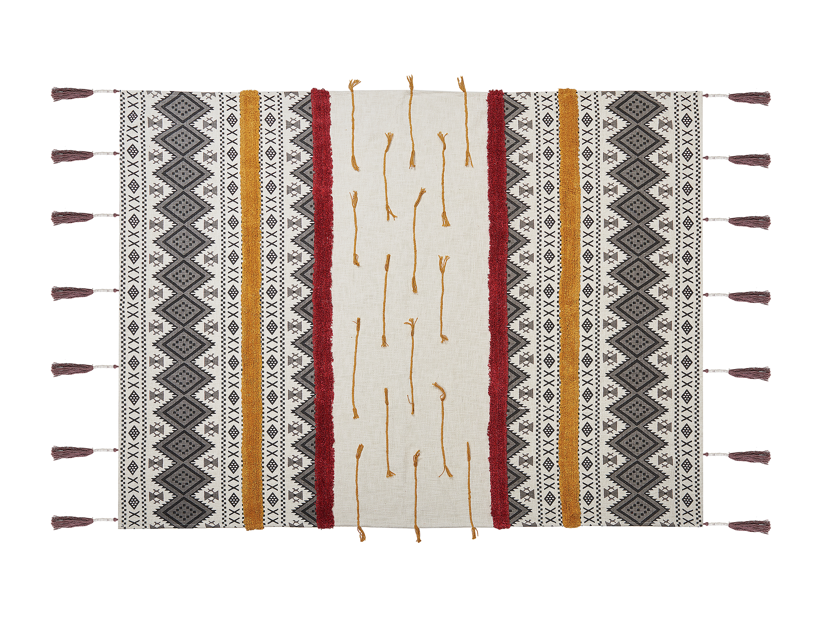 Kuscheldecke Baumwolle beige mit Muster bunt Quasten 130 x 180 cm Boho Munger
