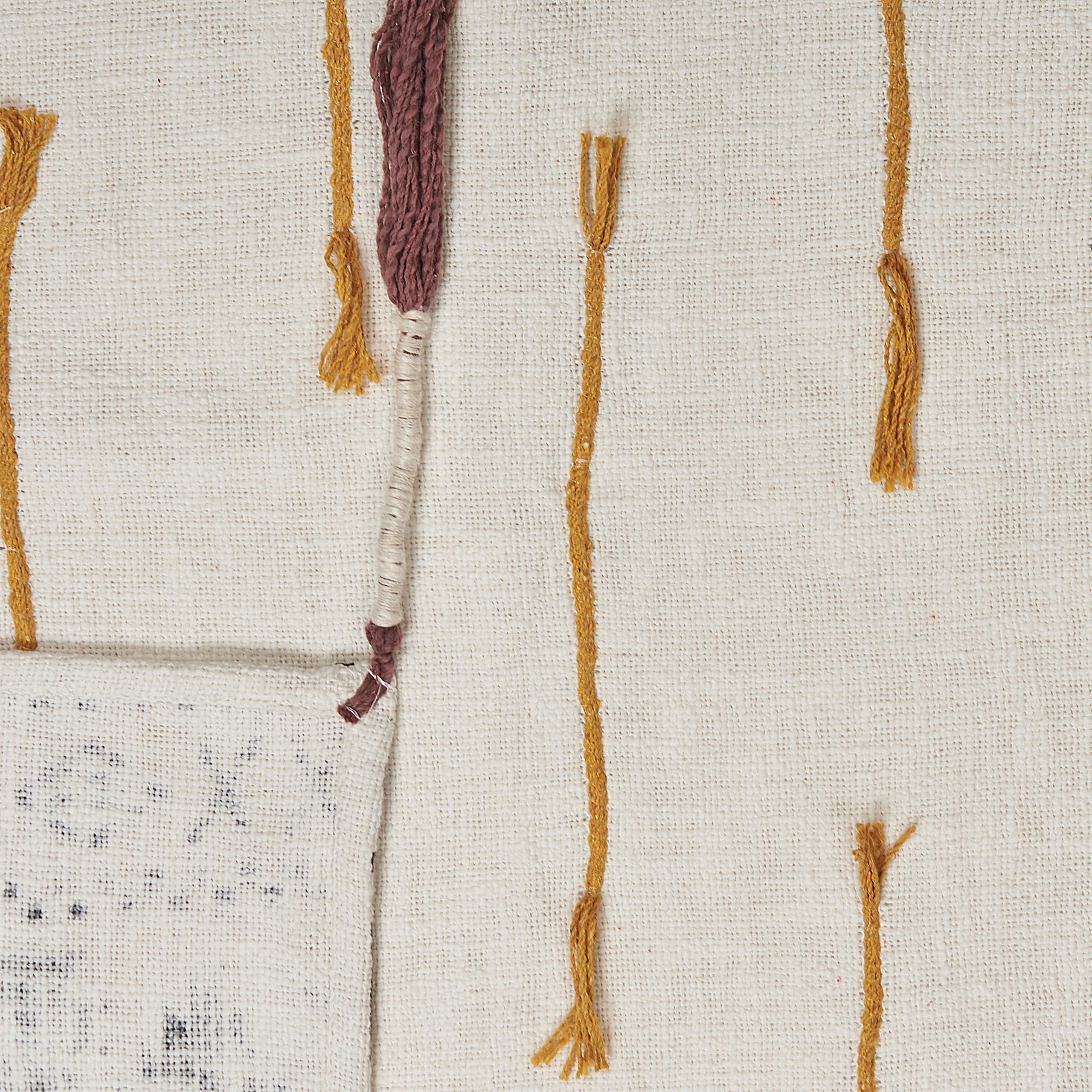 Tagesdecke beige/bunt 130x170cm Gesichtsmotiv mit Fransen modern Barbot