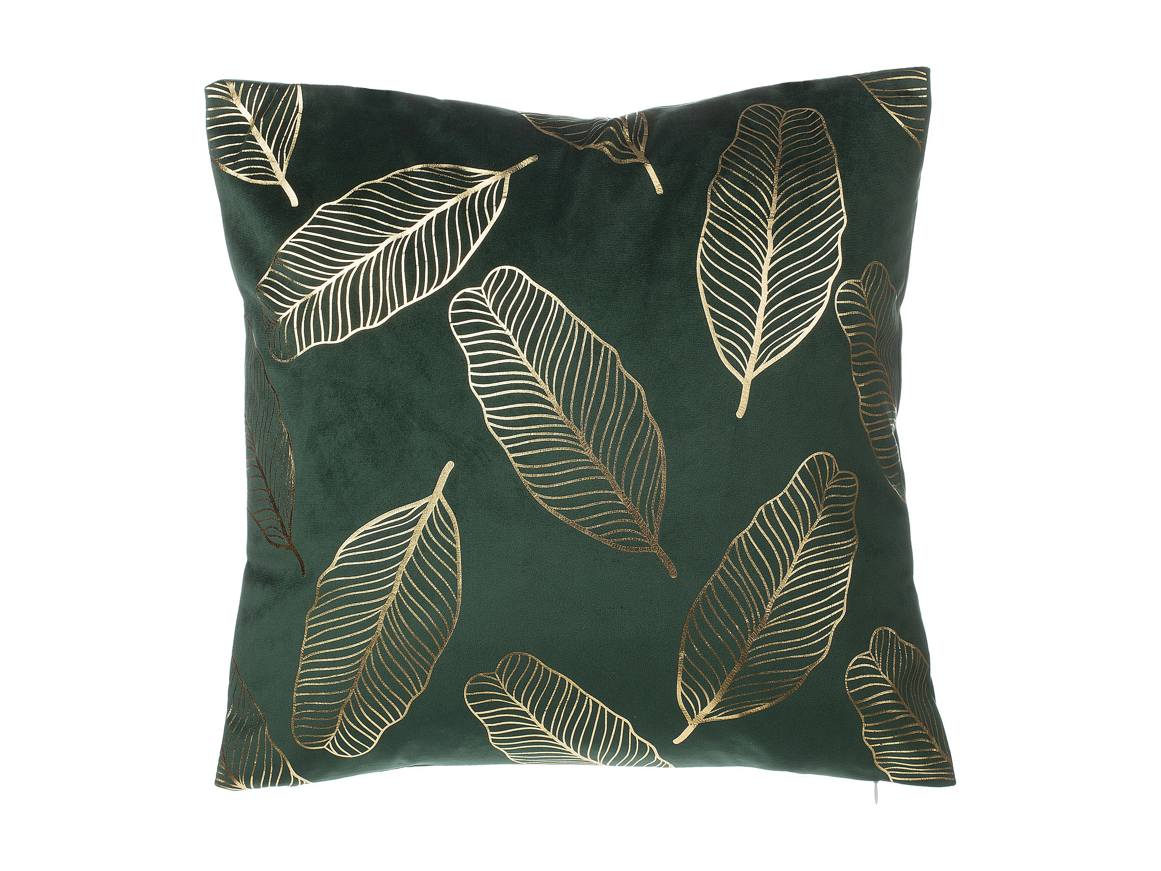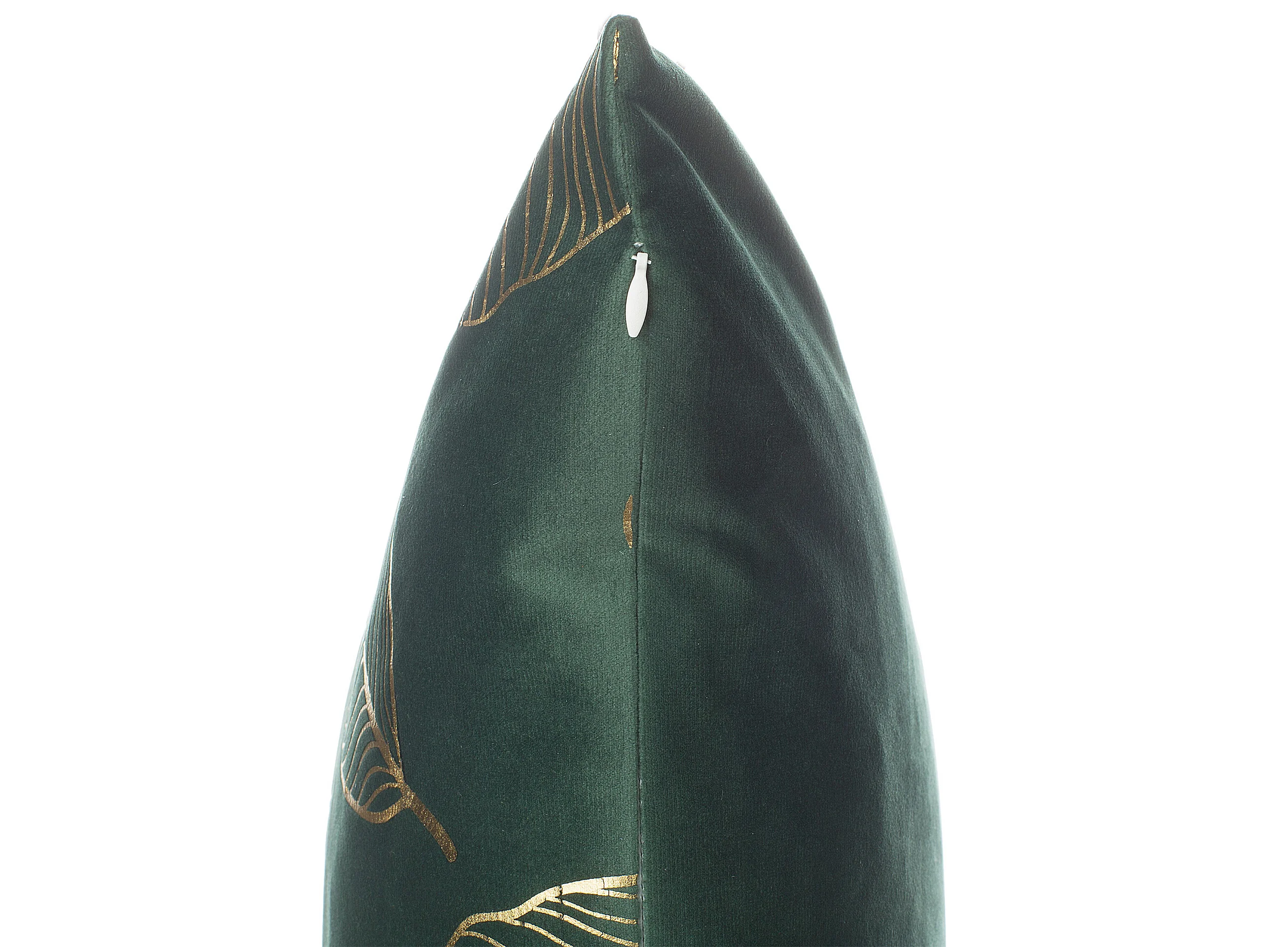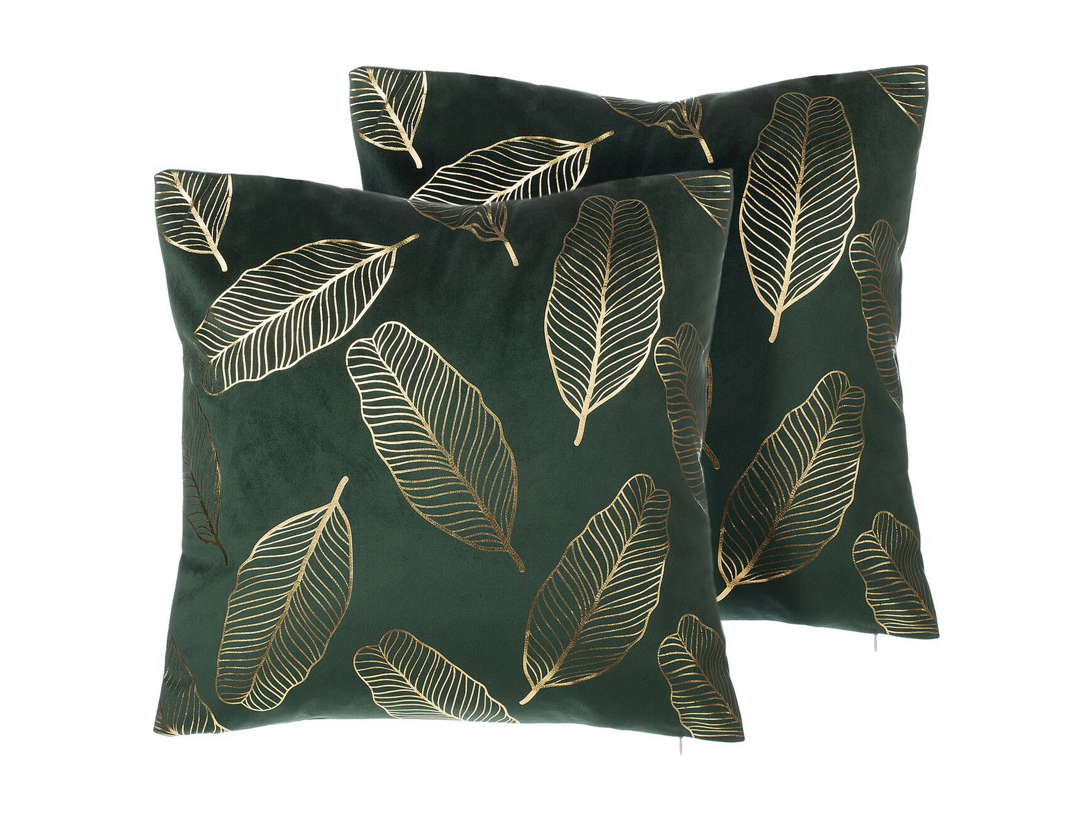 Dekokissen 2er Set 45 x 45 cm Samtstoff mit goldenen Blättern dunkelgrün Freesia