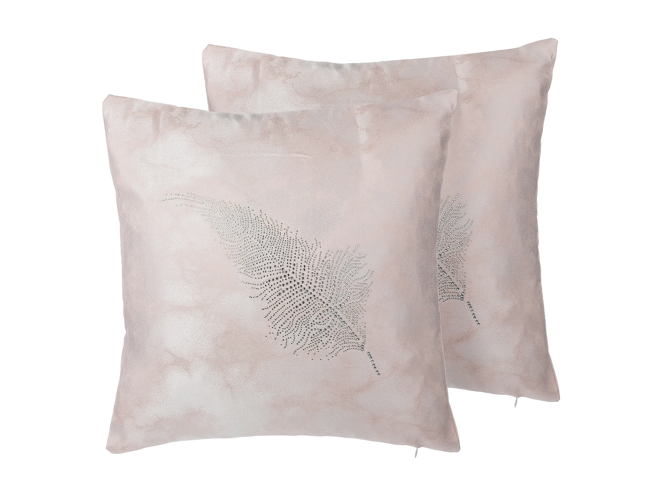 Dekokissen 2er Set 45 x 45 cm Polyester mit Silber Federmotiv zartrosa Silene