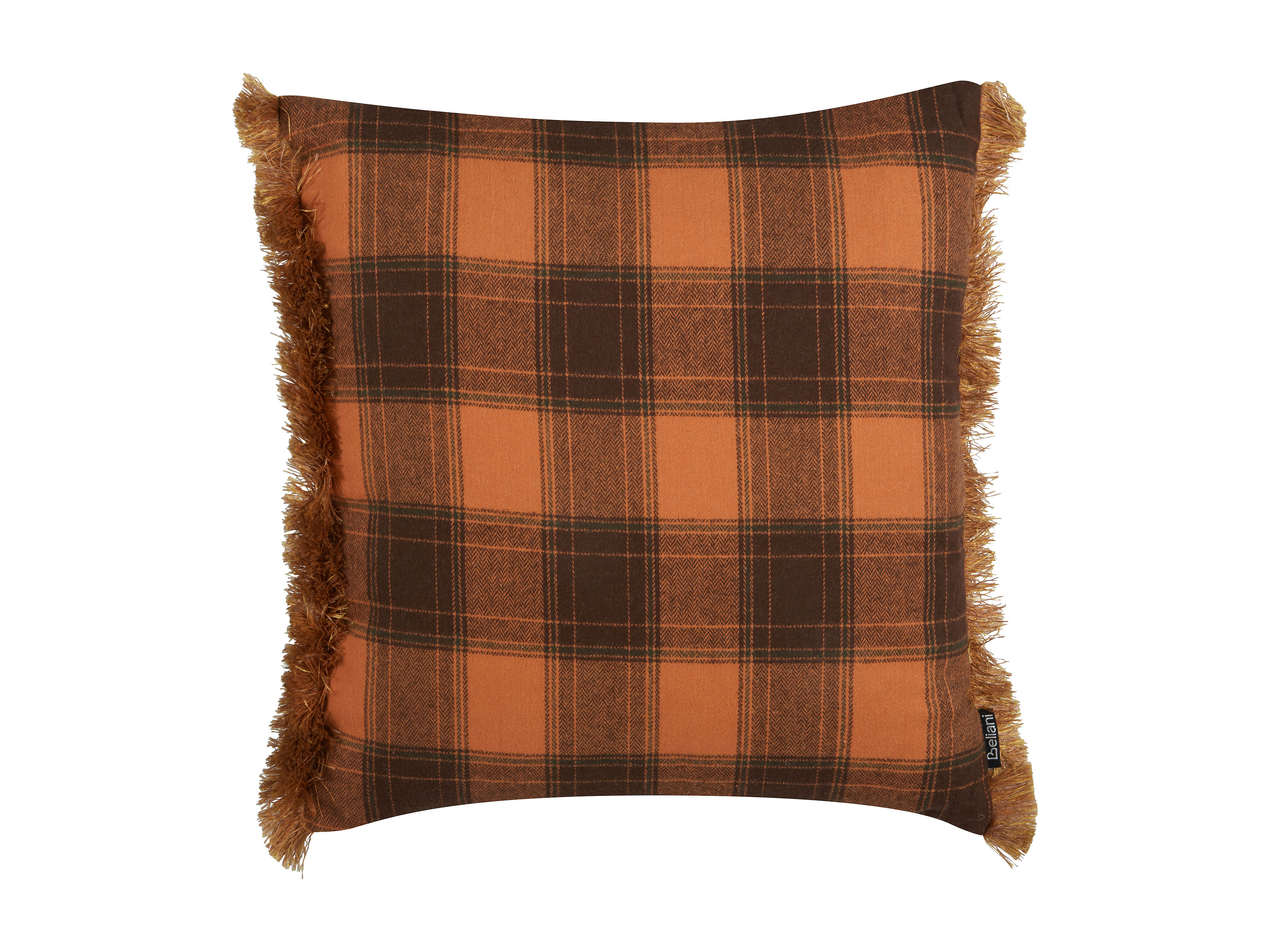 Dekokissen Stoff orange / schwarz kariert 45x45 cm mit Füllung Fransen Barja
