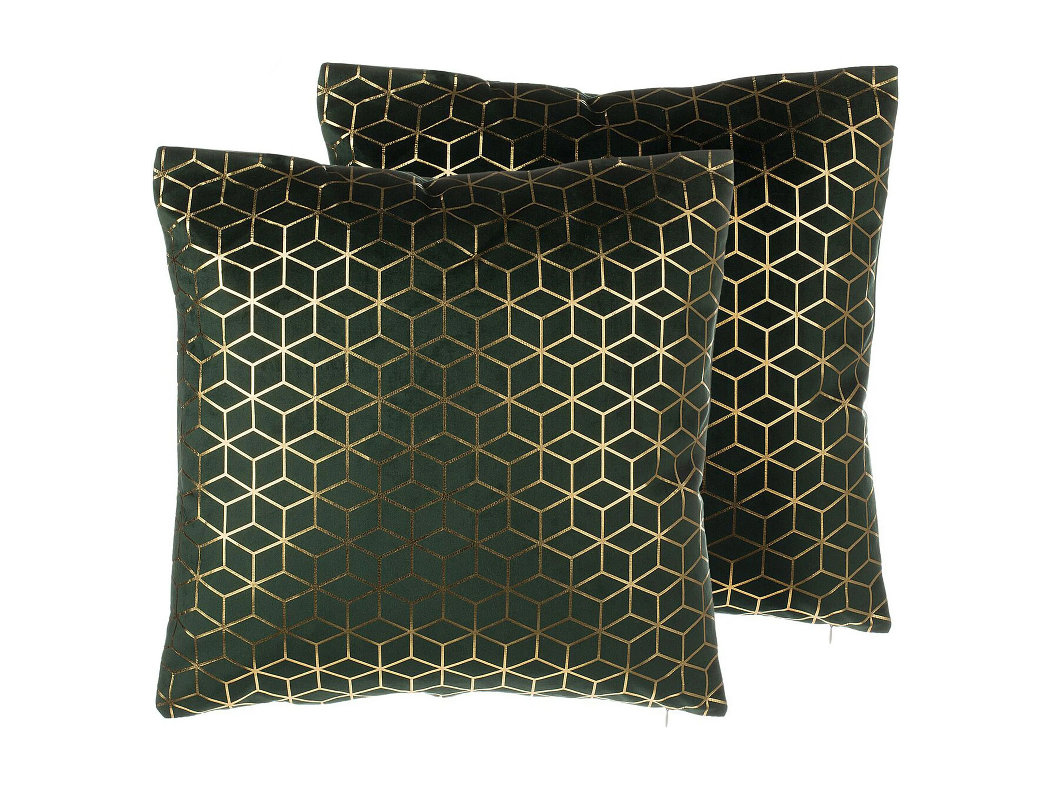 Dekokissen 2er Set 45 x 45 cm Samtstoff Netzmuster dunkelgrün gold Celosia