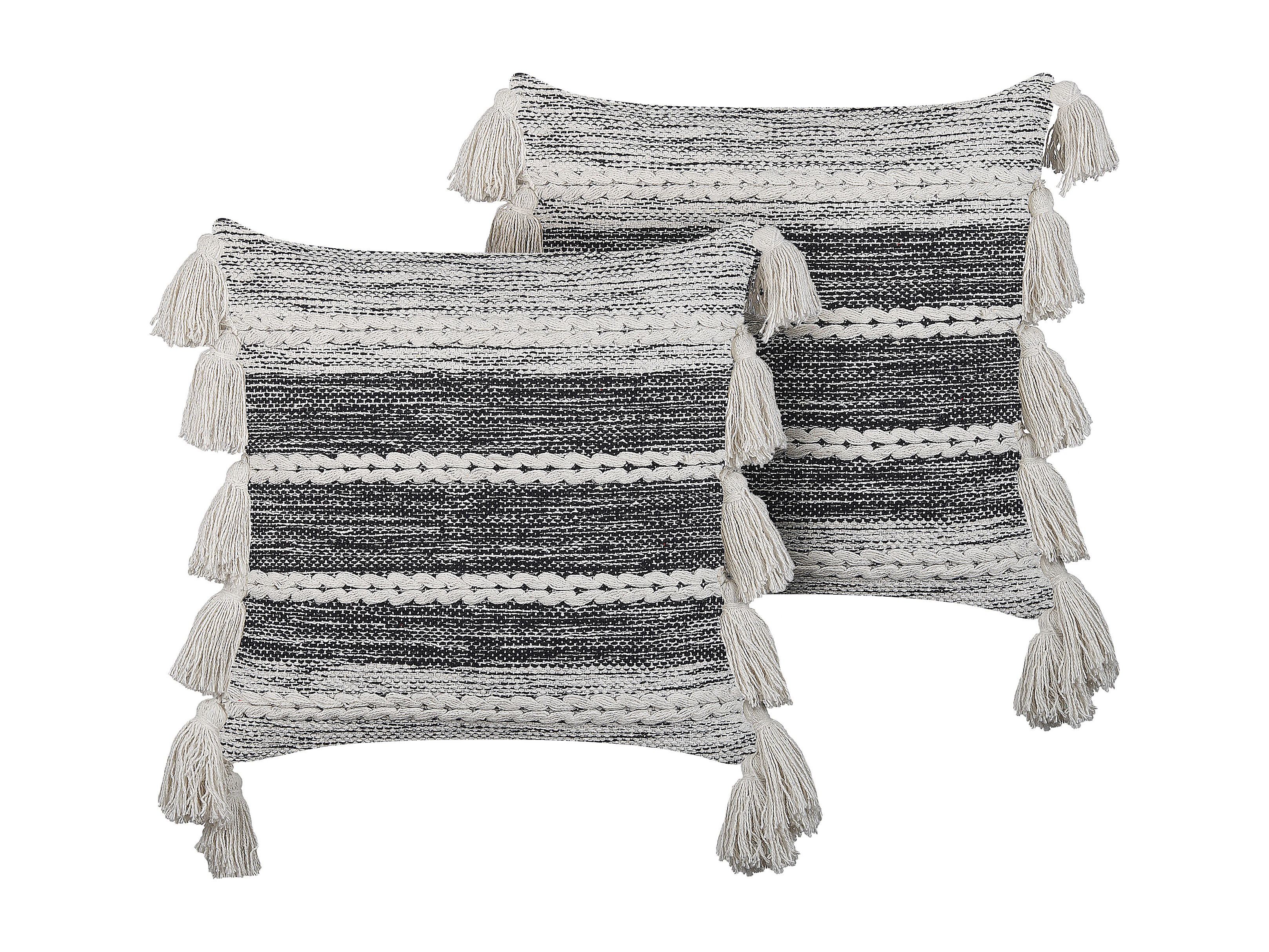 Dekokissen 2er Set beige / schwarz 45x45 cm Fransen orientalisch Boho AGRIMONY