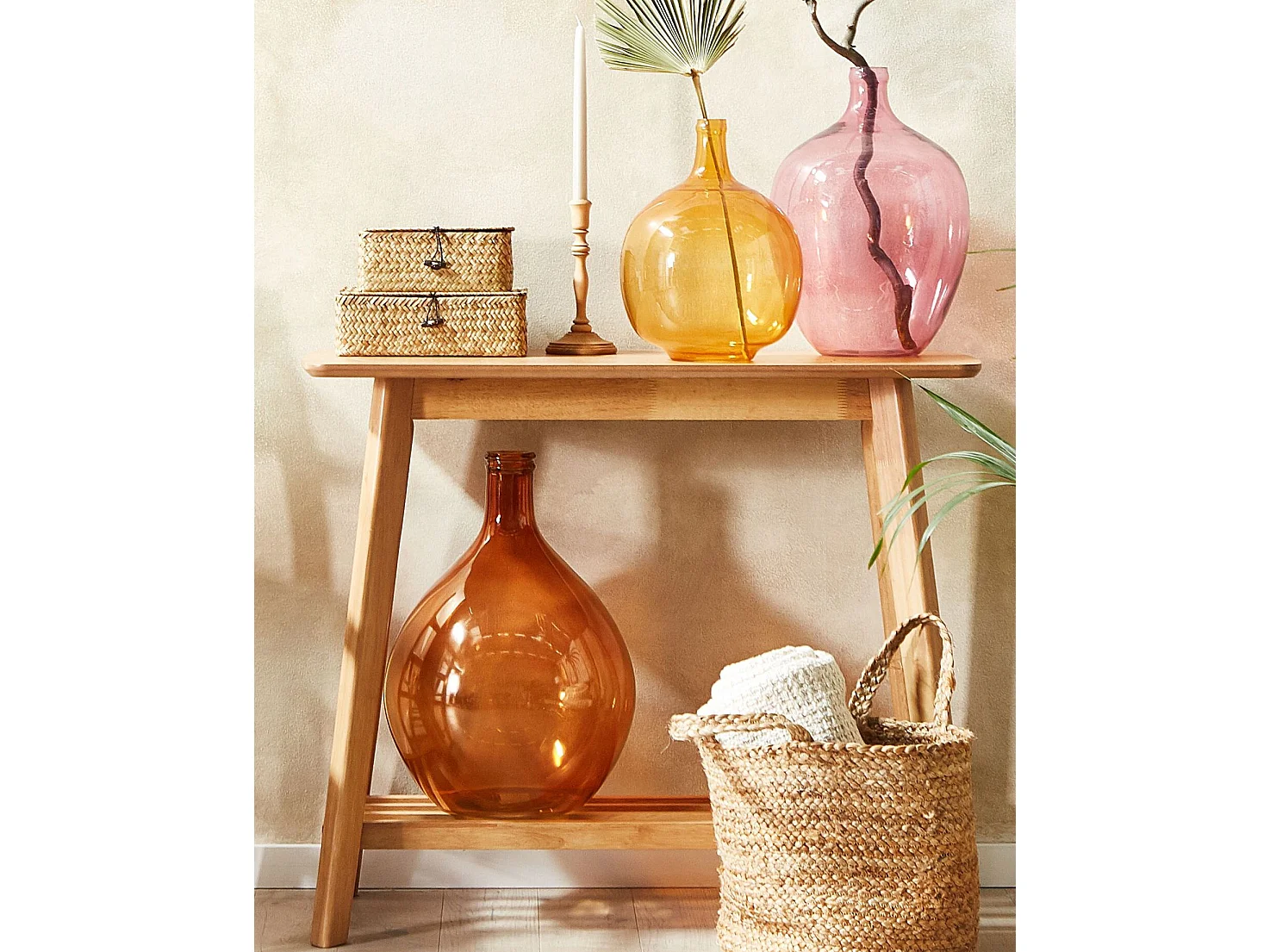Runde Dekovase aus gefärbtem Glas handgefertigt goldbraun 48 cm Chatni