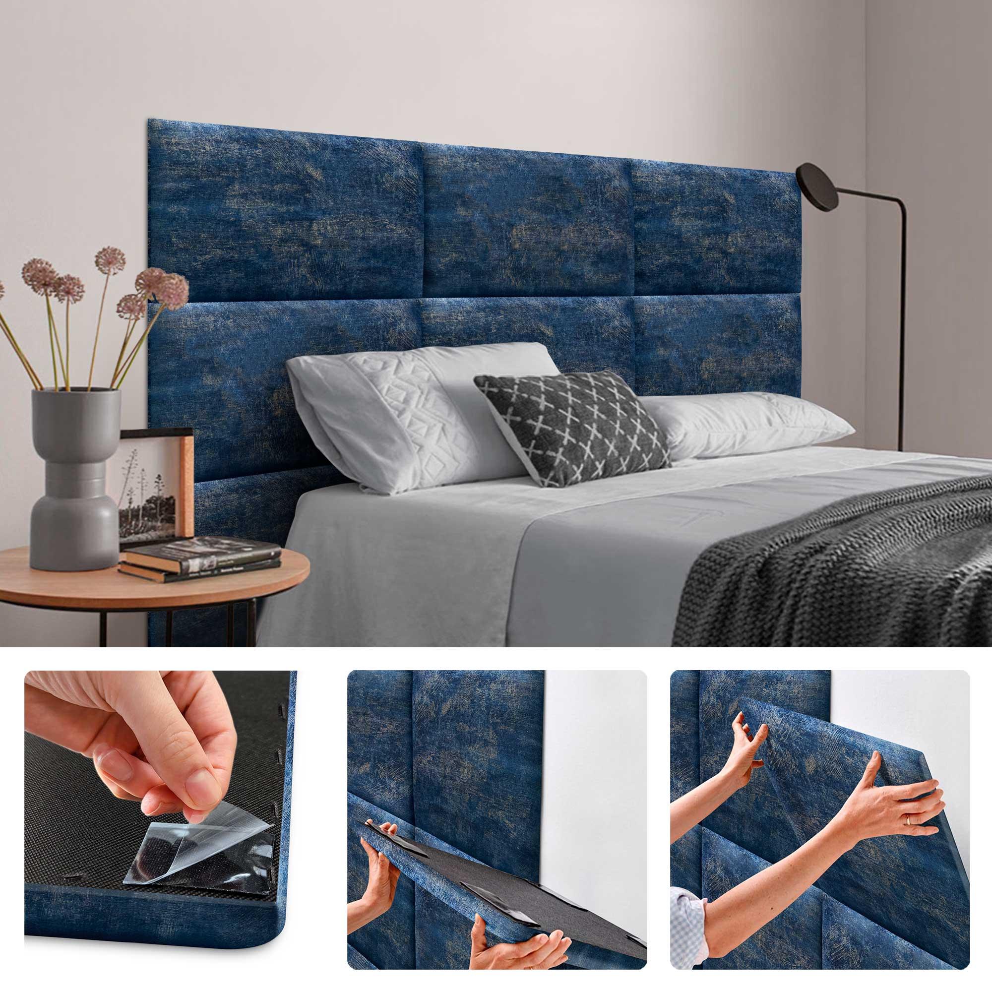 DHOME Gepolstertes Kopfteil aus austauschbaren selbstklebenden Paneelen Luxury Edition Serie Luxusbett Schlafzimmer (Luxurious Blue, 150cm)