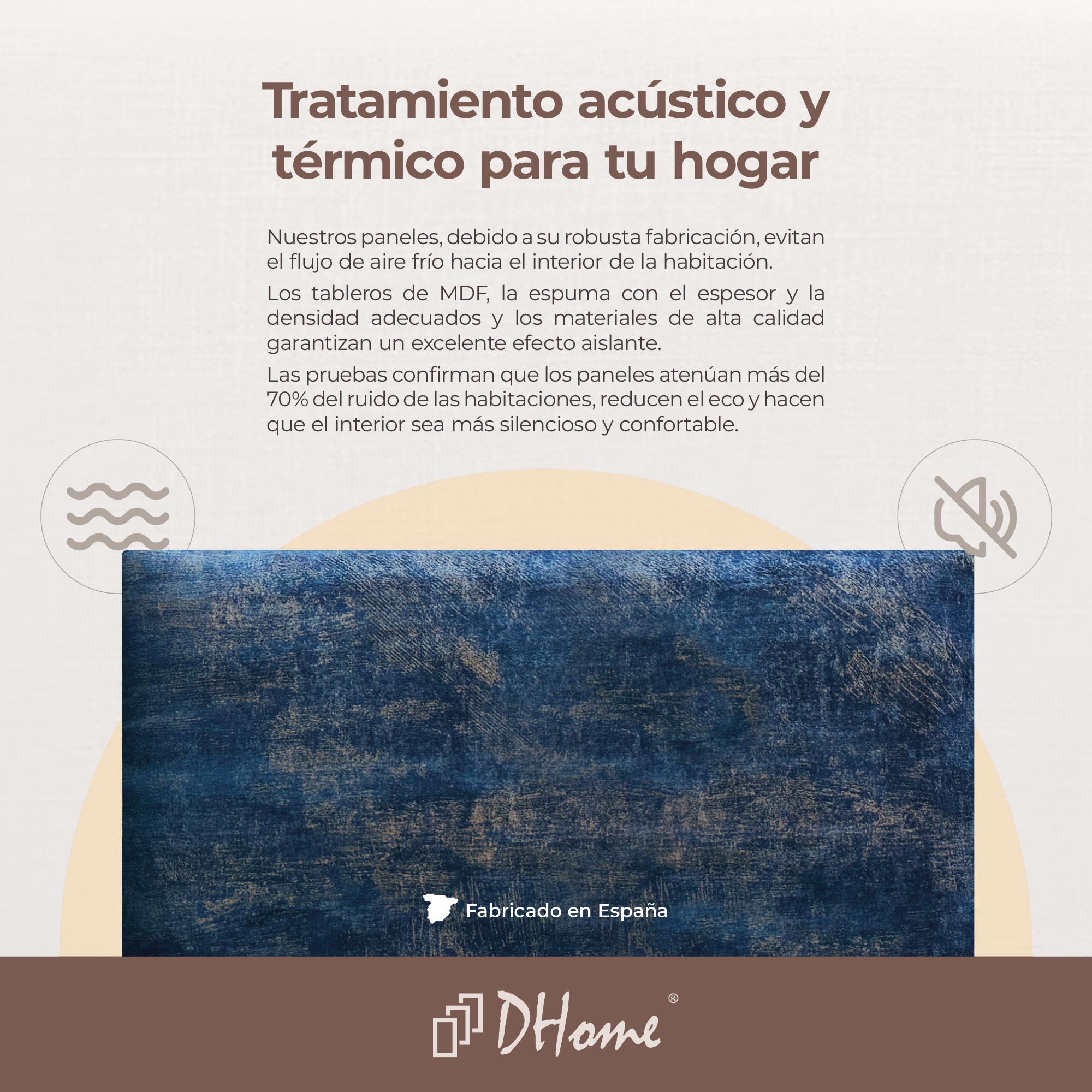 DHOME Set aus 6 mit Leinen gepolsterten selbstklebenden Paneelen für Wände - Schallabsorbierend, Stoßschutz, Kopfteil-Dekoration (Blau, 60x50cm, x6)