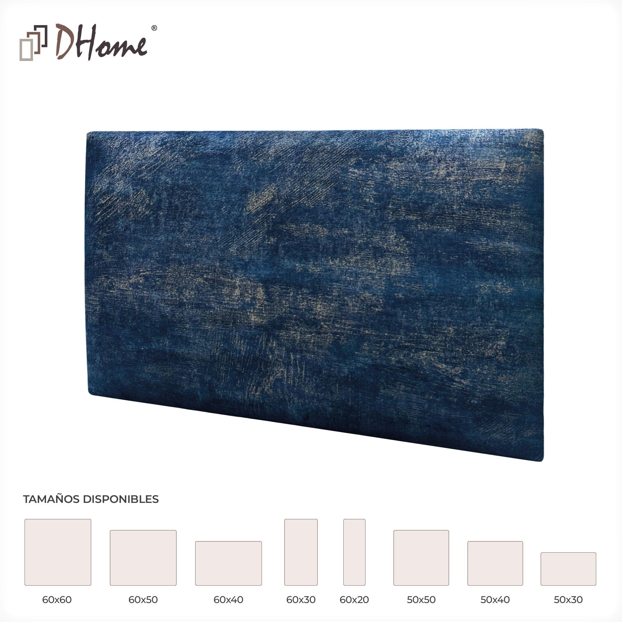 DHOME Set mit 1 gepolstertem Premium-Samt-Panel, selbstklebend für Wände, schallabsorbierend, stoßfest, Kopfteil-Schutz (Blau, 60x50cm, x1)