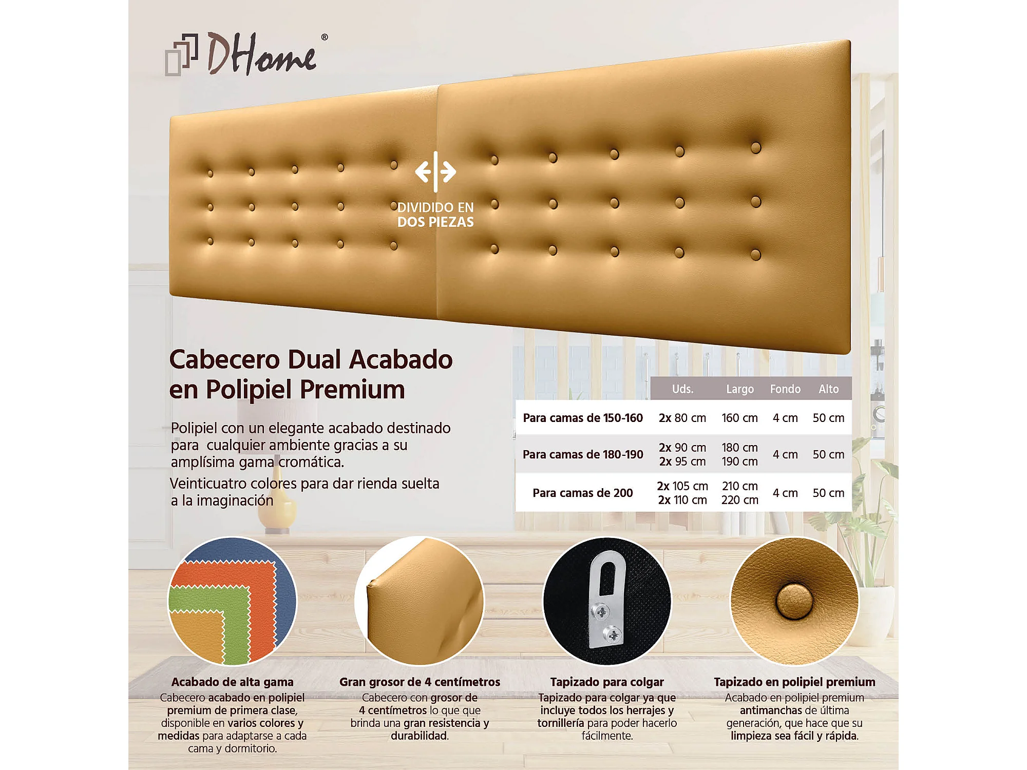 DHOME Kopfteil de Kunstleder mit 3 Knopfreihen gepolstertes luxuriöses Bettkopfteil (Dorado, 160cm (2piezas))