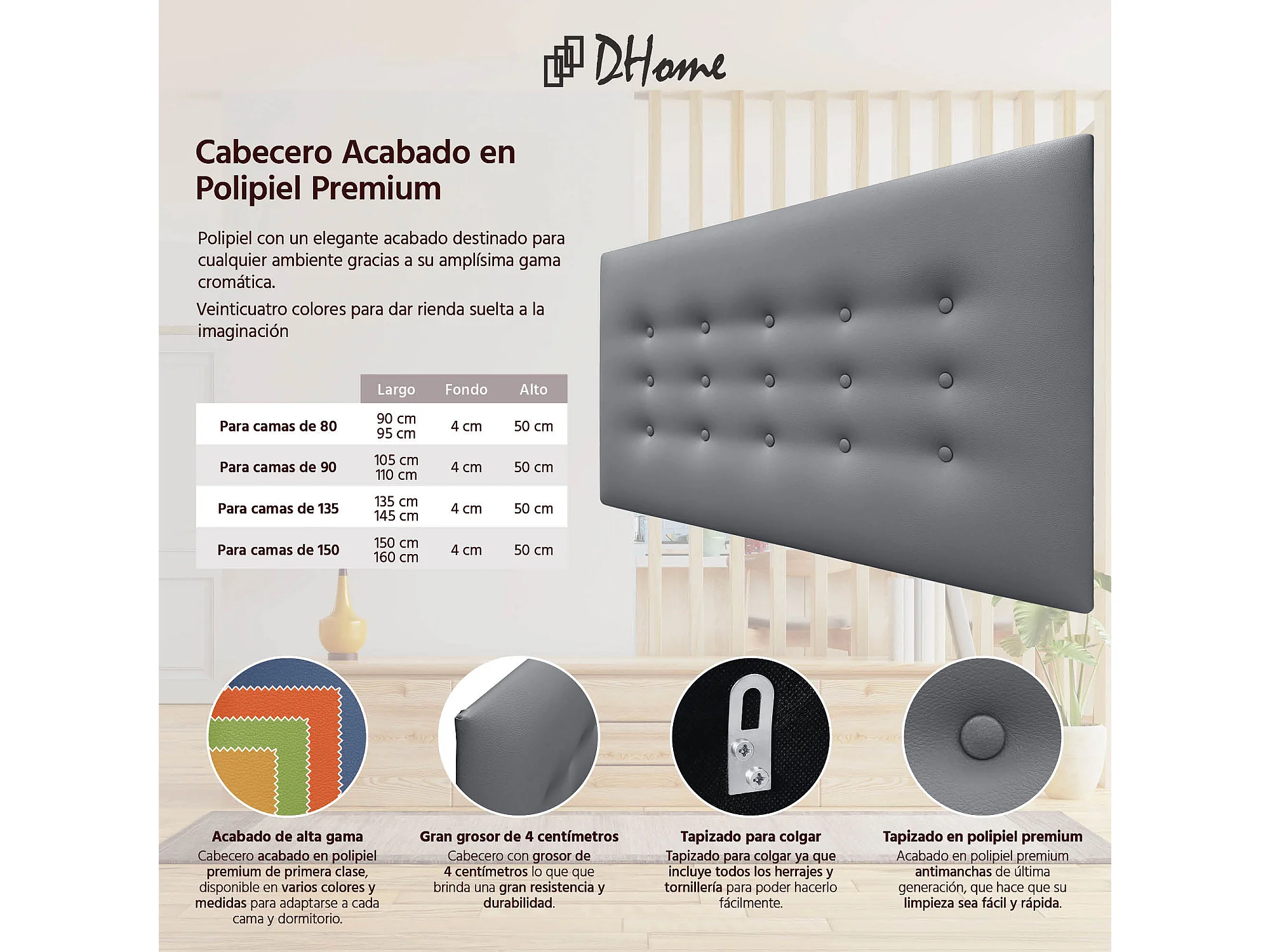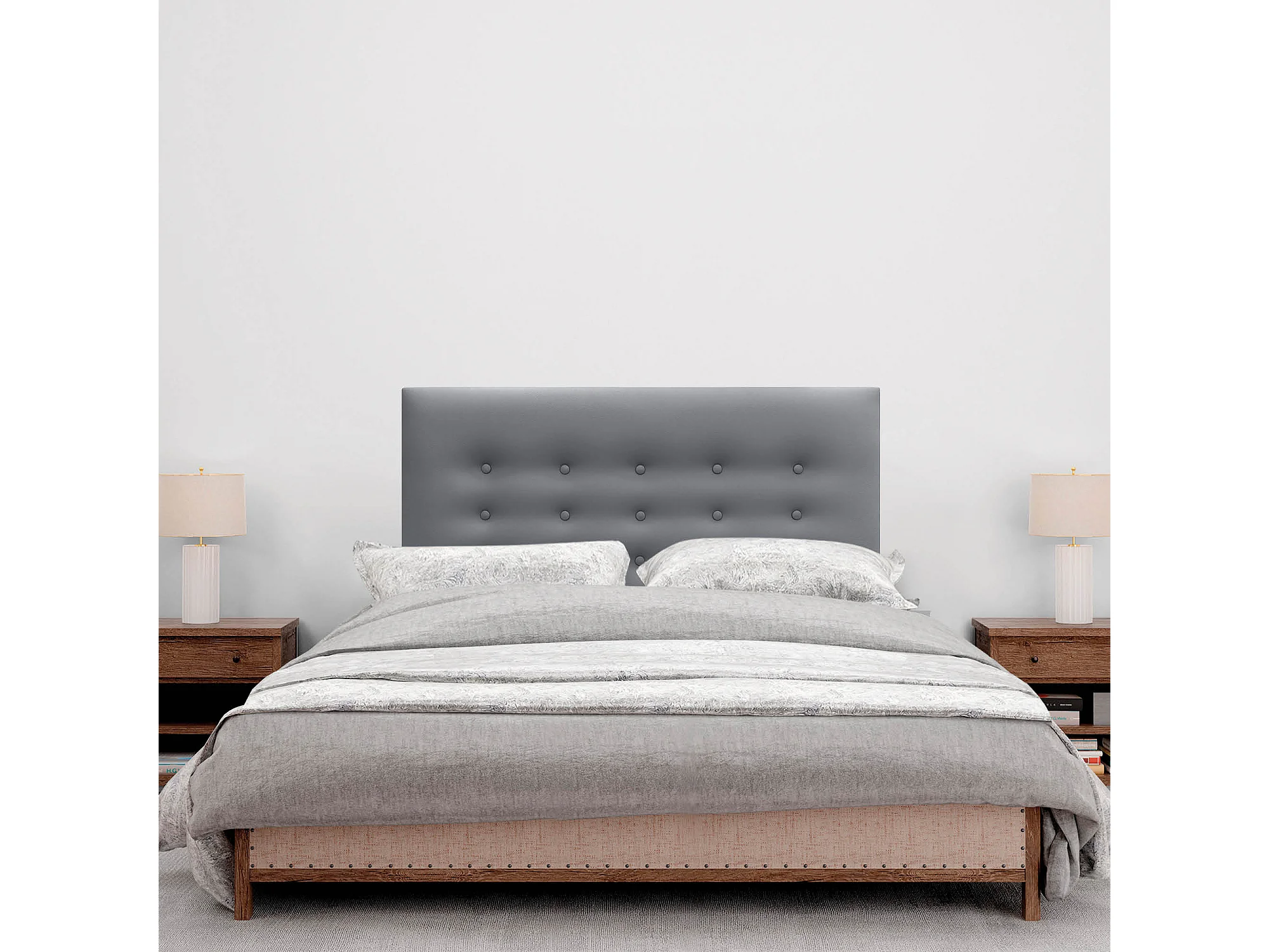 DHOME Kopfteil de Kunstleder mit 3 Knopfreihen gepolstertes luxuriöses Bettkopfteil (Gris, 90cm)