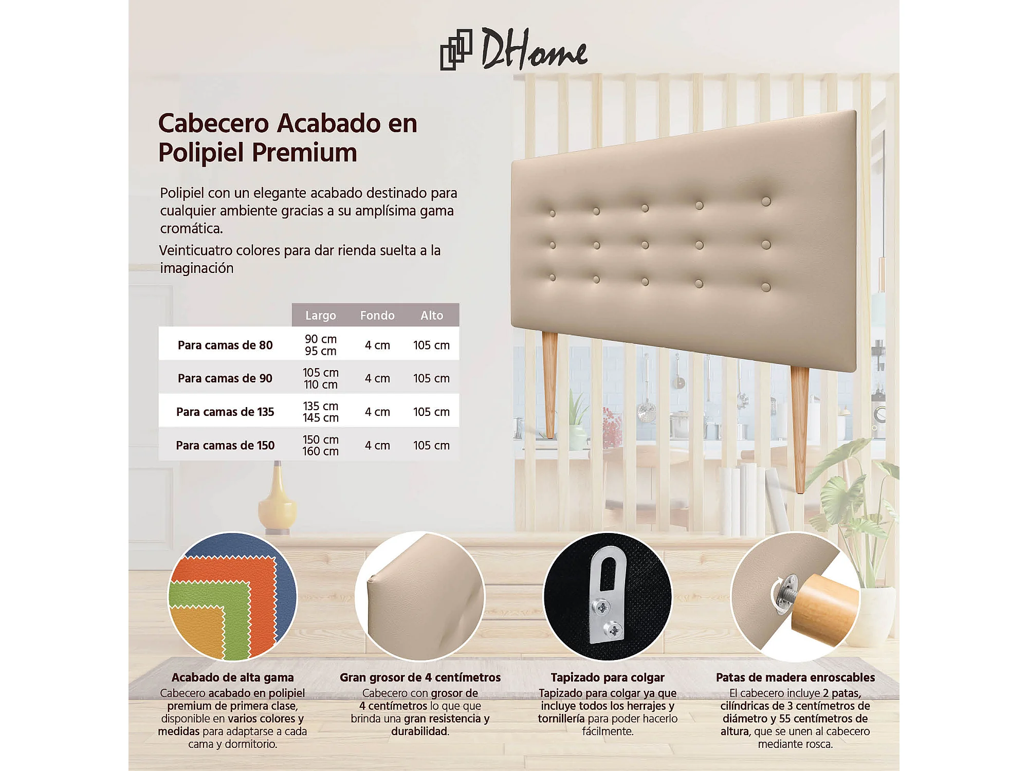 DHOME Kopfteil de Kunstleder mit 3 Knopfreihen und Beinen gepolstertes luxuriöses Bettkopfteil (Beige, 105cm)