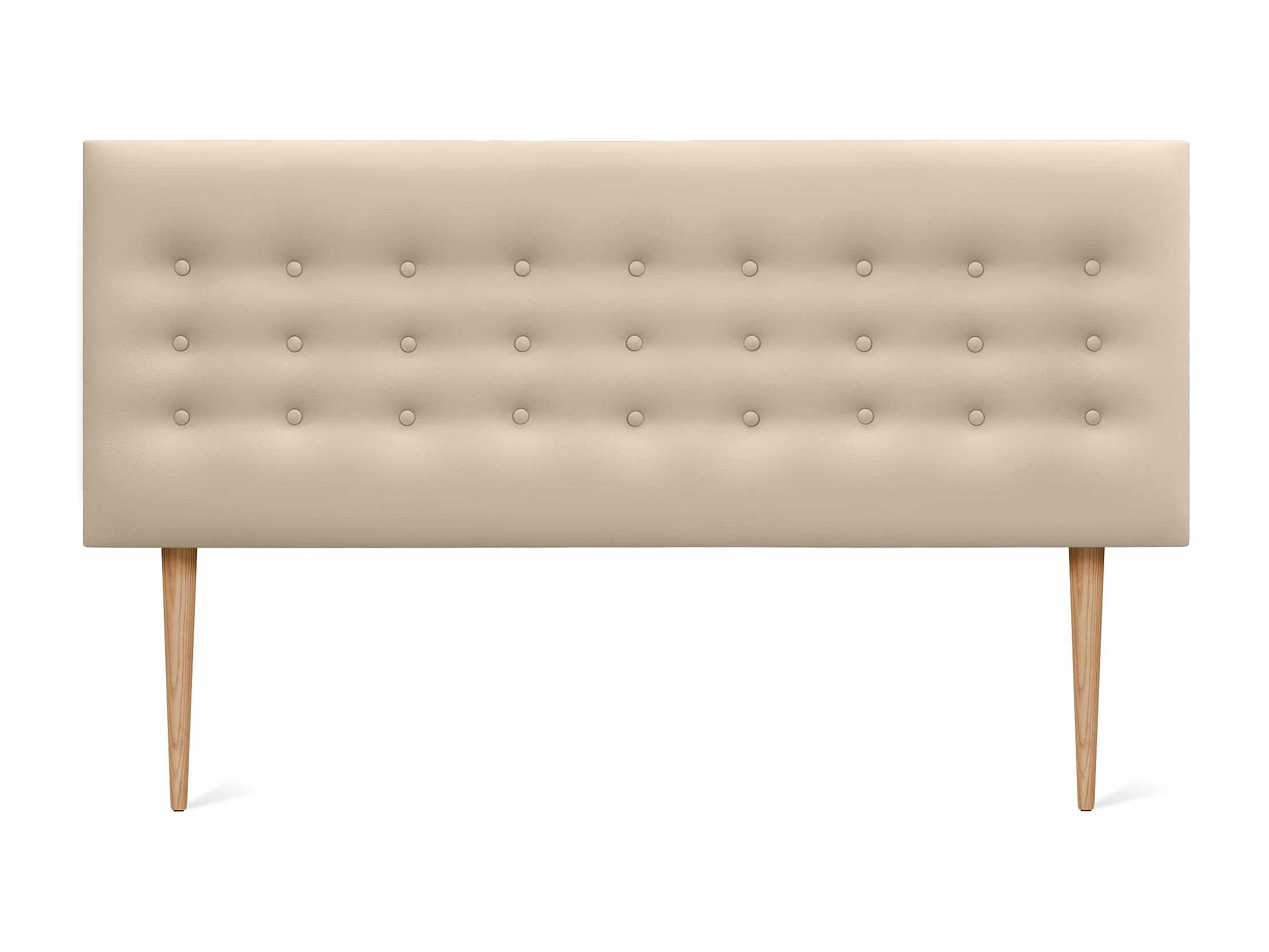 DHOME Kopfteil de Kunstleder mit 3 Knopfreihen und Beinen gepolstertes luxuriöses Bettkopfteil (Beige, 160cm)