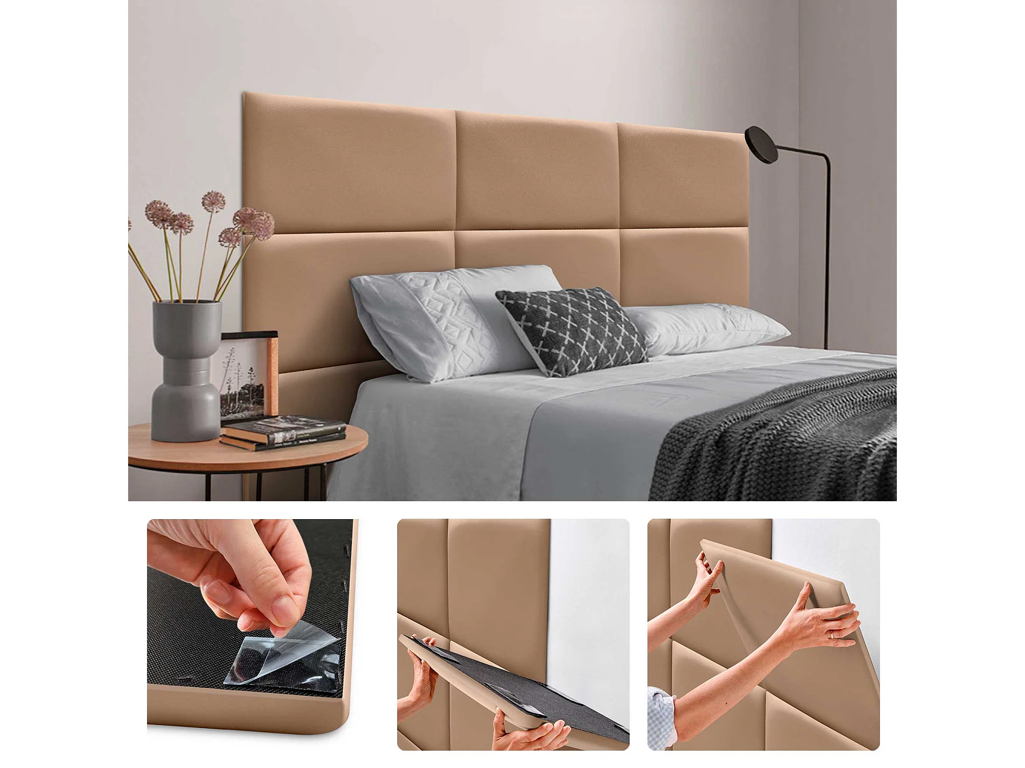 DHOME Selbstklebende Wandpaneele aus Kunstleder, schallabsorbierender Schutz, Stoßschutz, Kopfteile, Dekoration (Hellbraun, 60 x 50 cm)