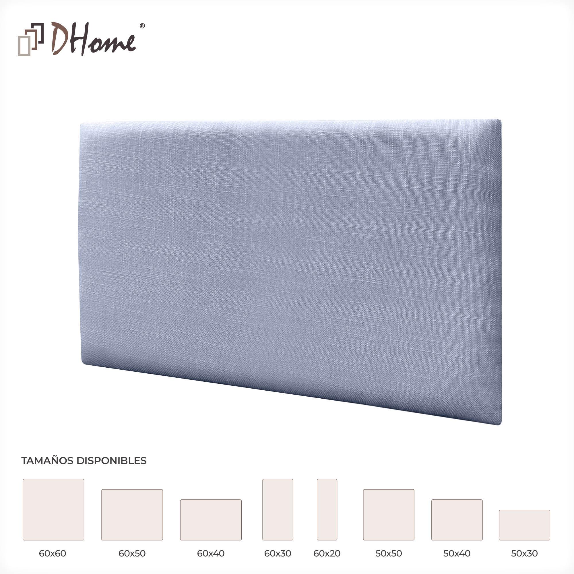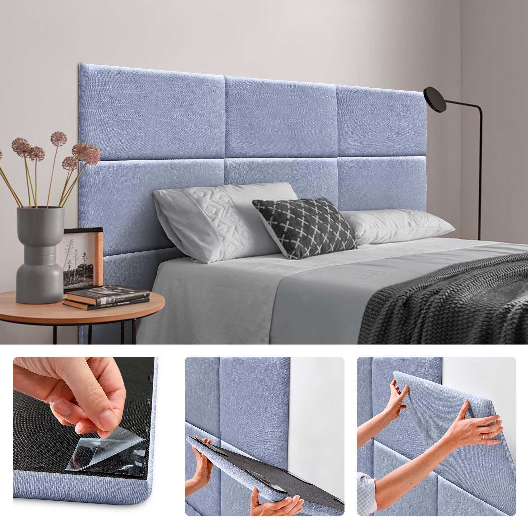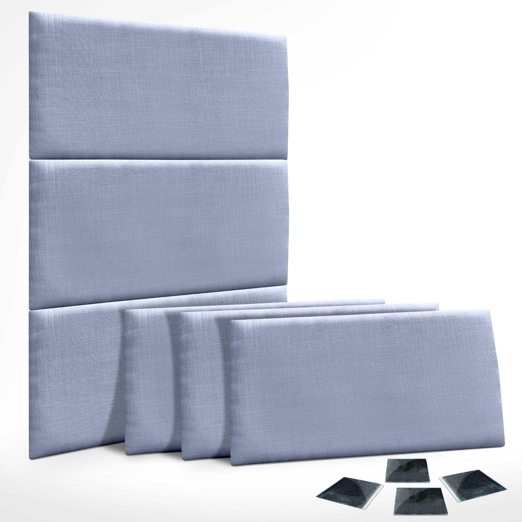 DHOME Set aus 6 mit Leinen gepolsterten selbstklebenden Paneelen für Wände - Schallabsorbierend, Stoßschutz, Kopfteil-Dekoration (Blau, 60x50cm, x6)