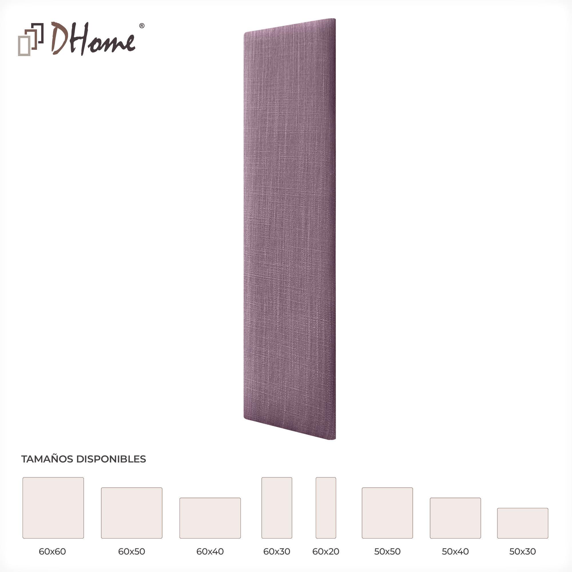 DHOME Set aus 6 mit Leinen gepolsterten selbstklebenden Paneelen für Wände - Schallabsorbierend, Stoßschutz, Kopfteil-Dekoration (Lila, 60x20cm, x6)