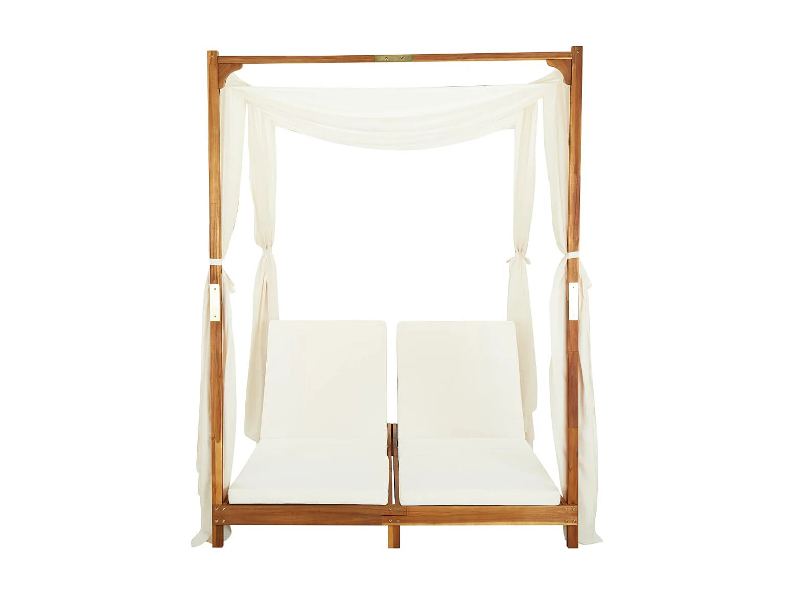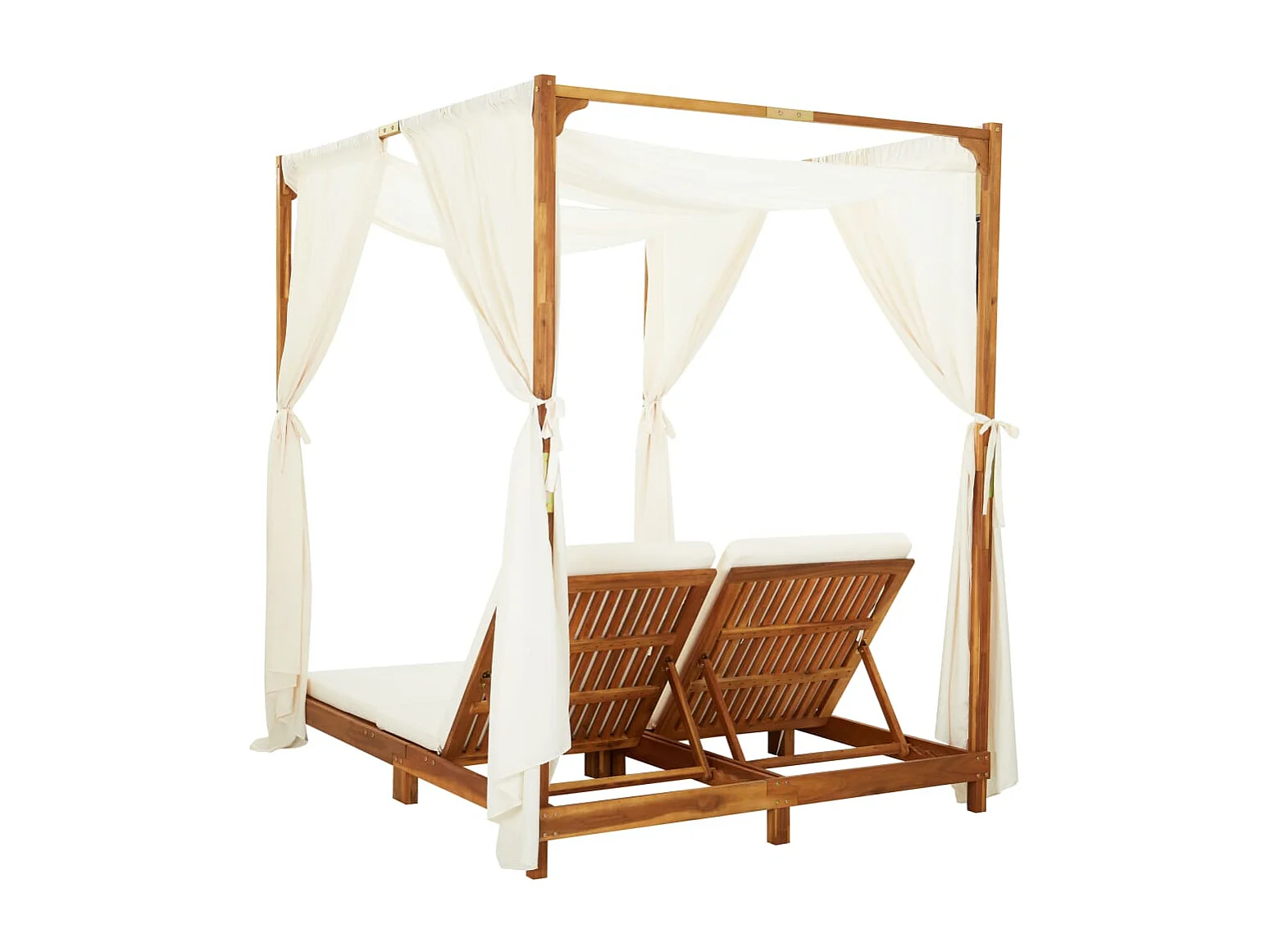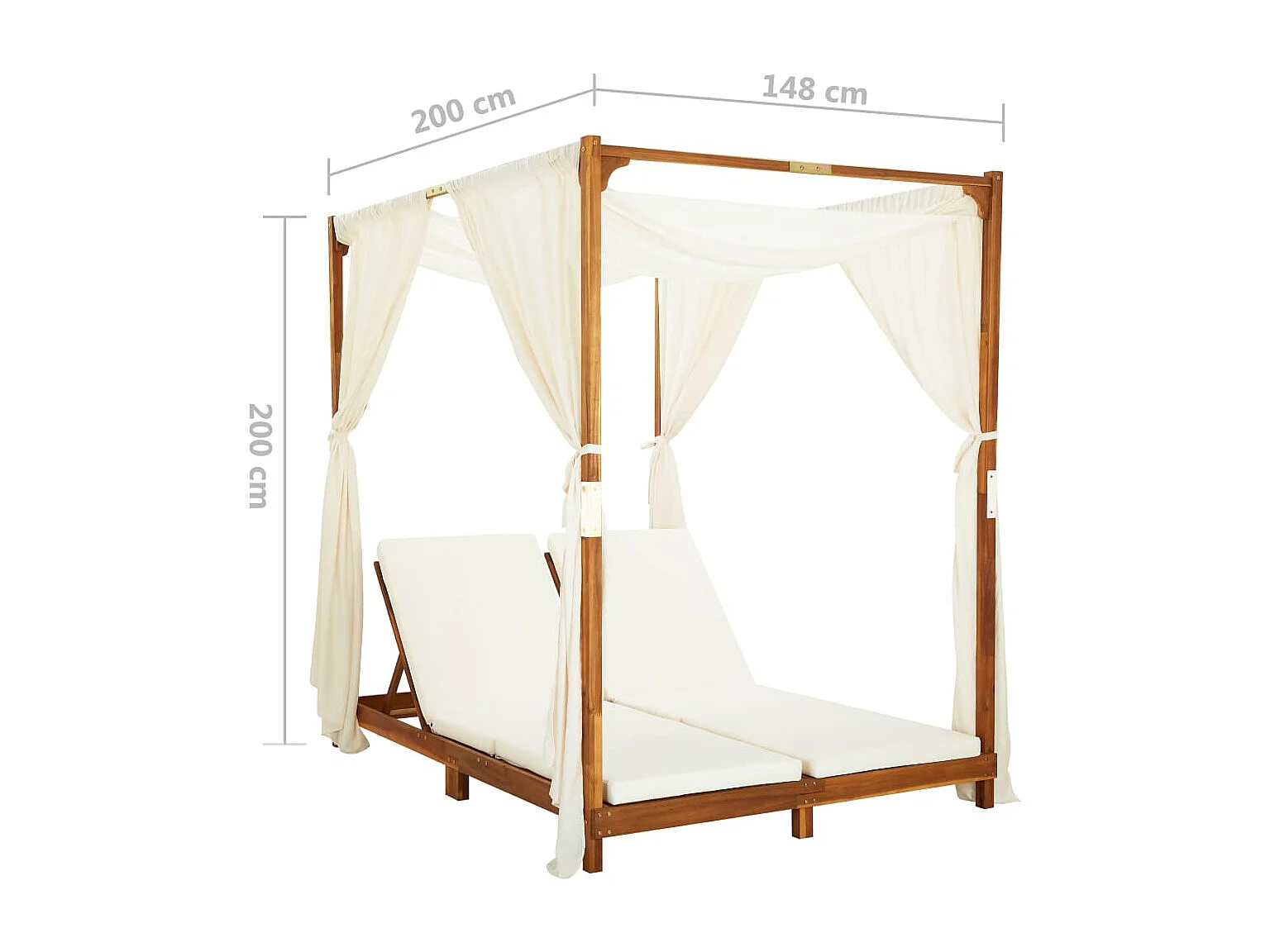 Doppel-Sonnenliege mit Vorhängen und Auflagen Akazie Massivholz