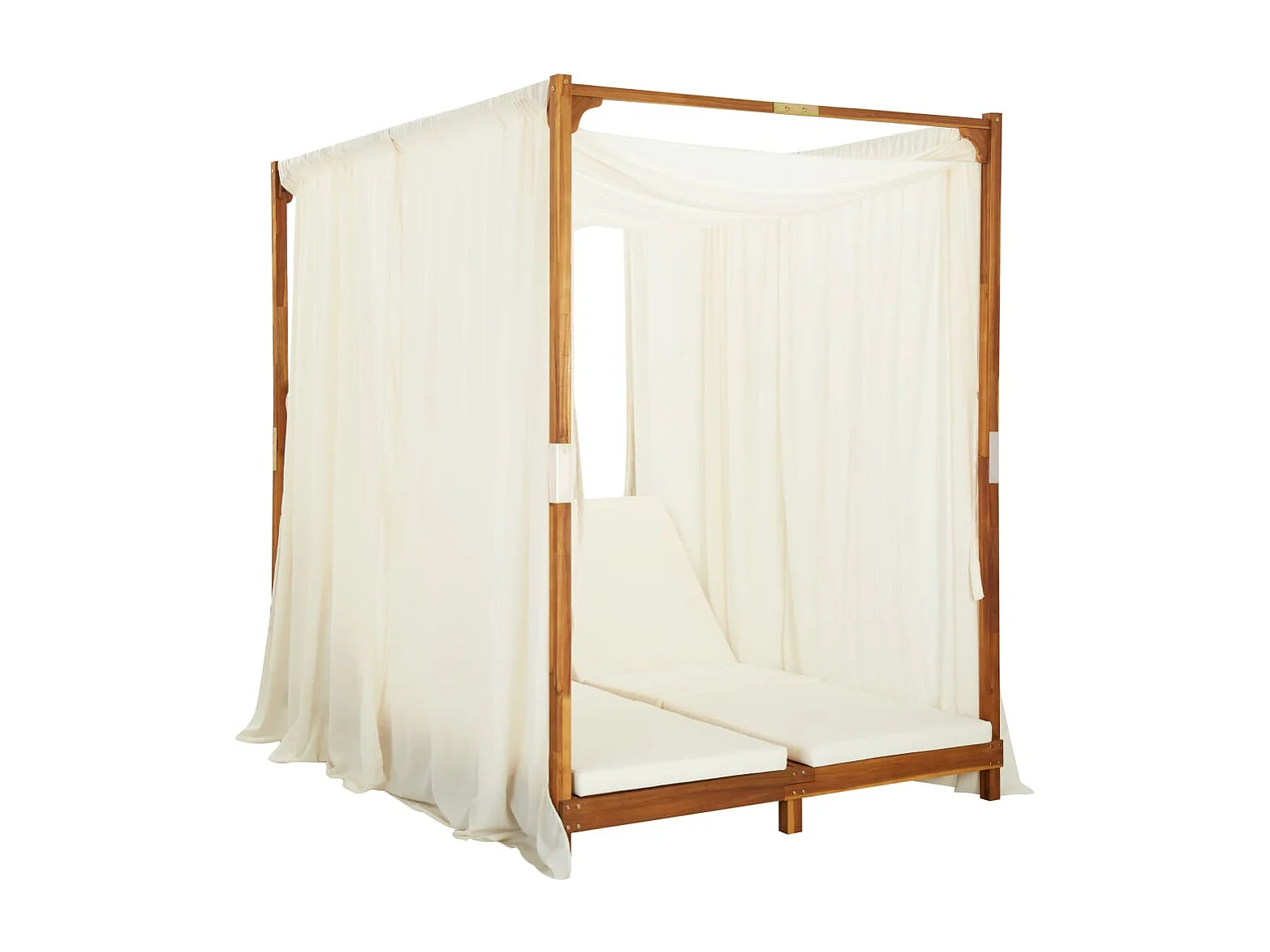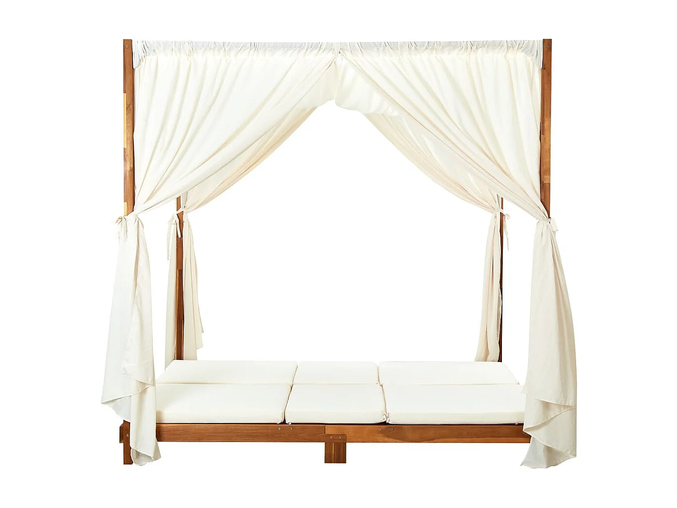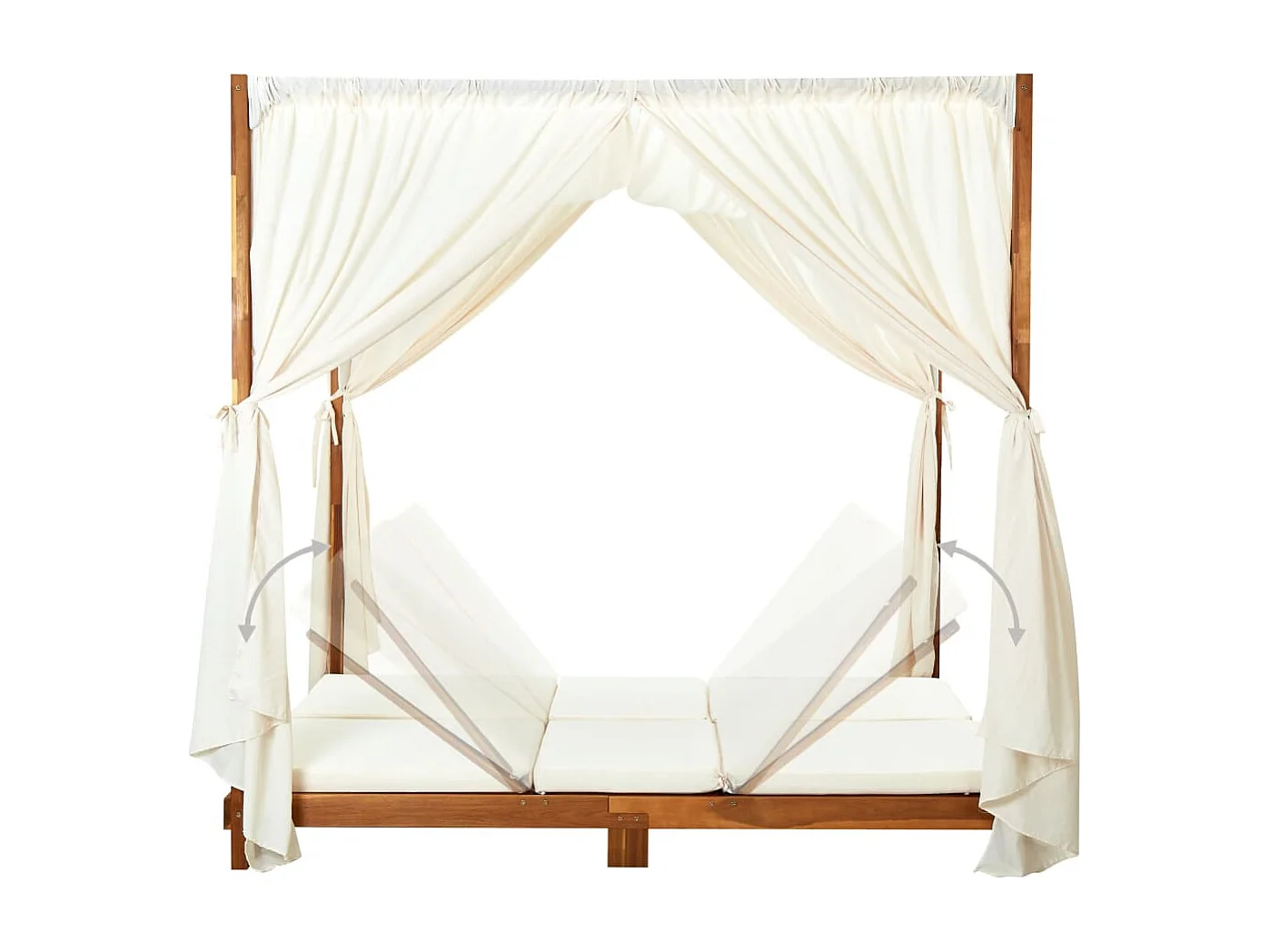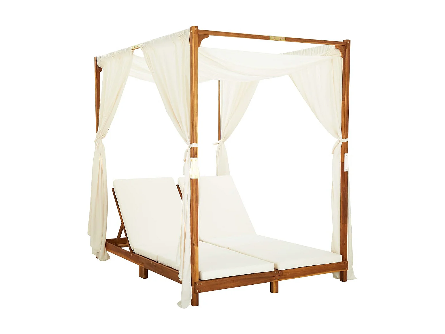 Doppel-Sonnenliege mit Vorhängen und Auflagen Akazie Massivholz