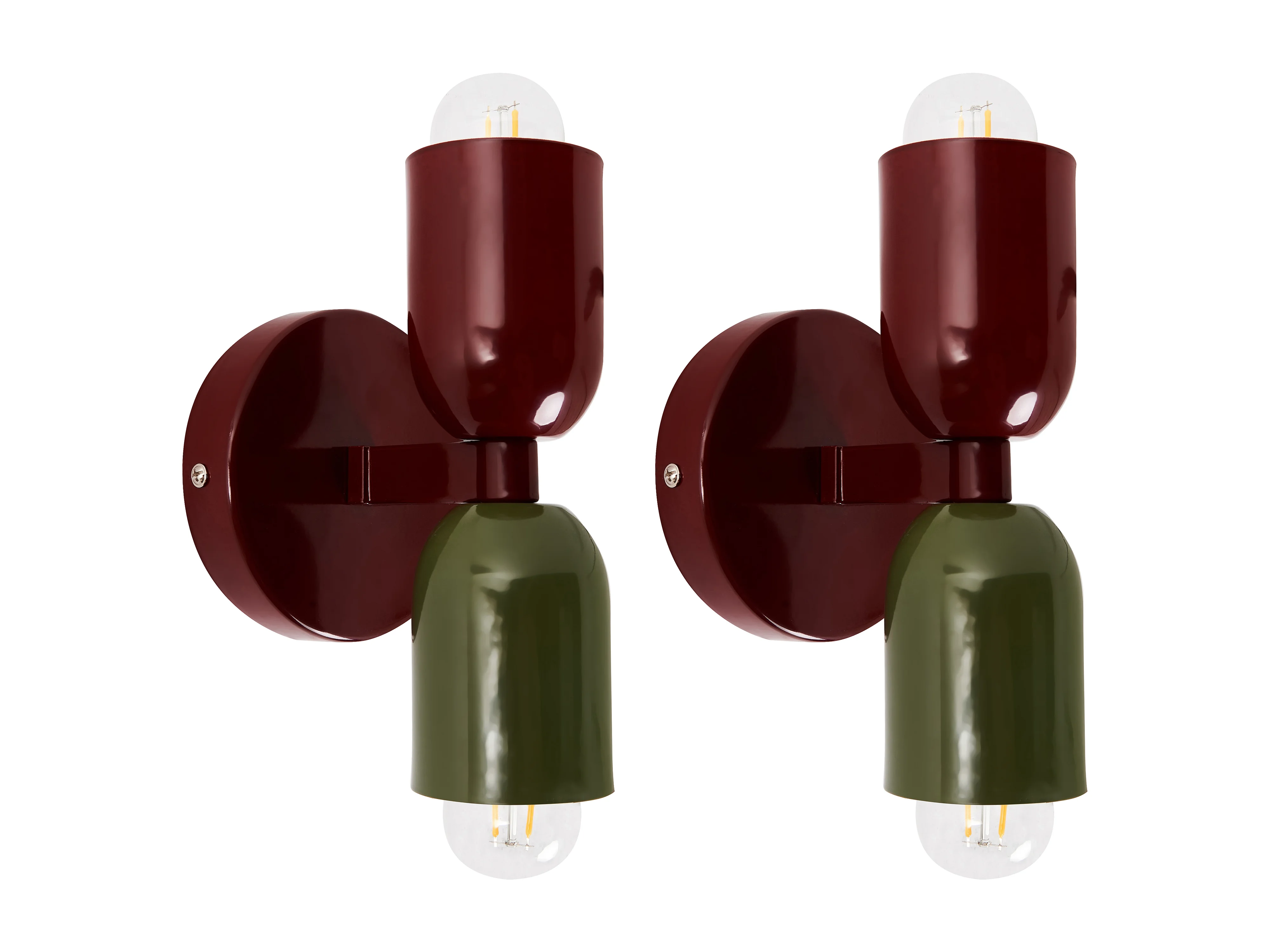 Doppelkopf Wandleuchte 2er Set Metall rot / grün 2-flammig Retro Topi