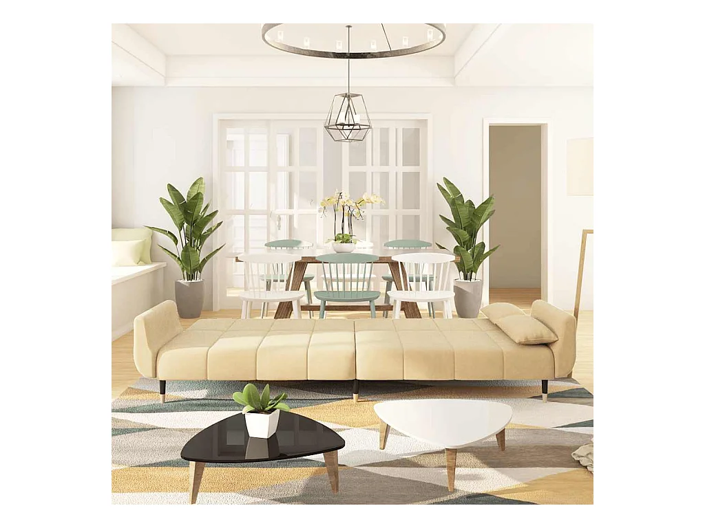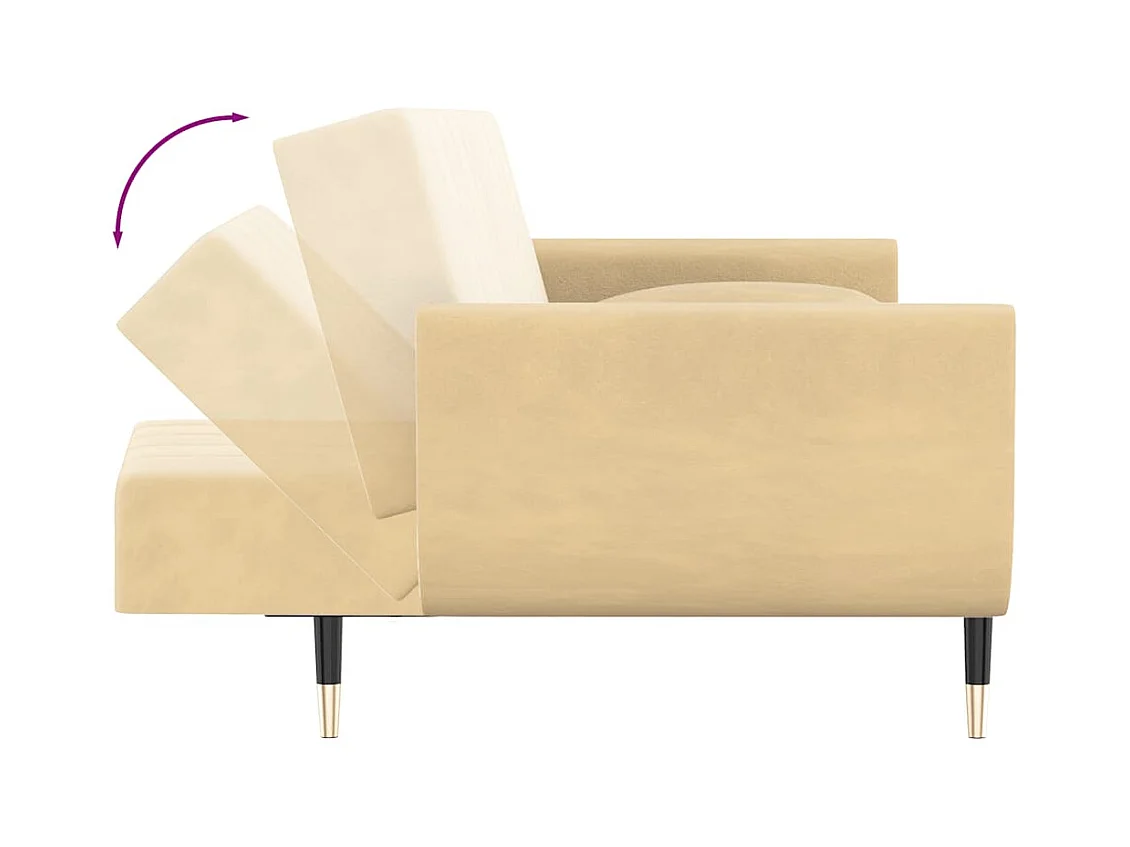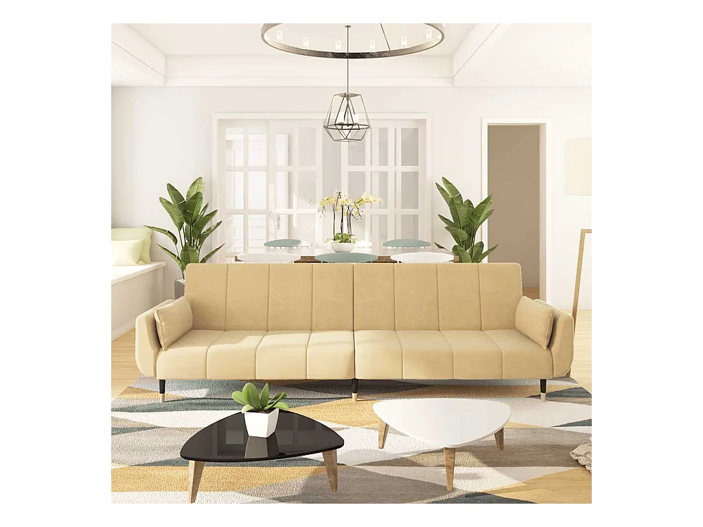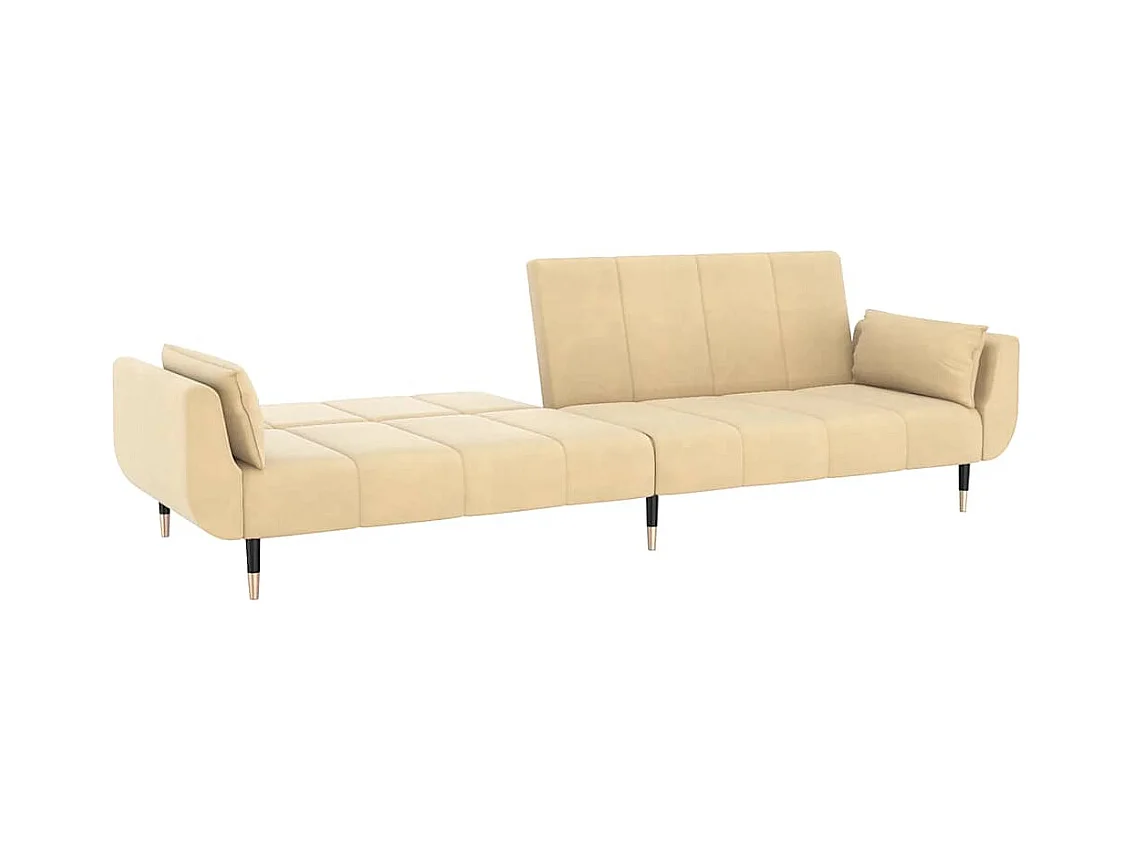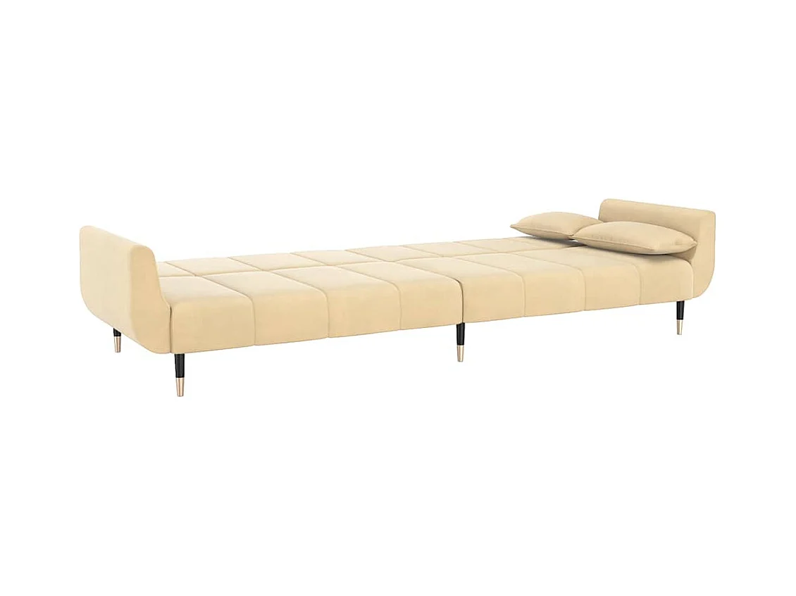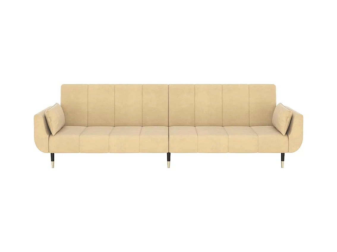 Doppelschlafsofa mit zwei Kissen, cremefarbener Samt