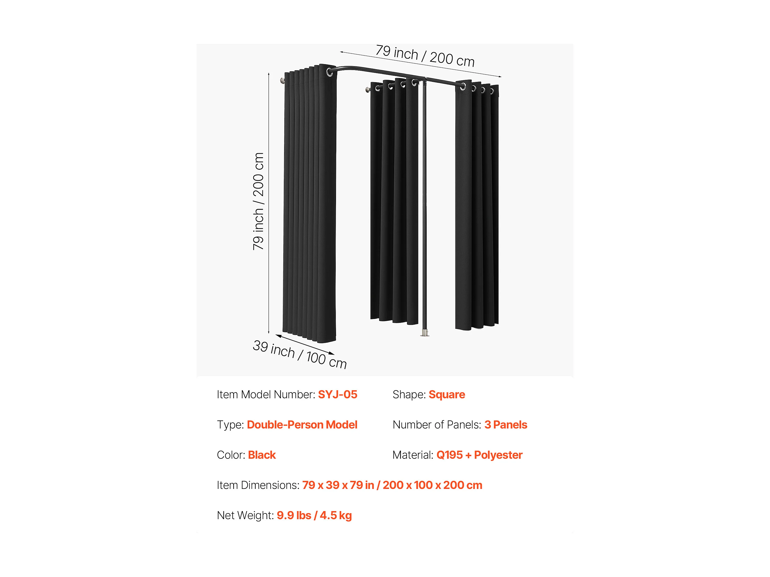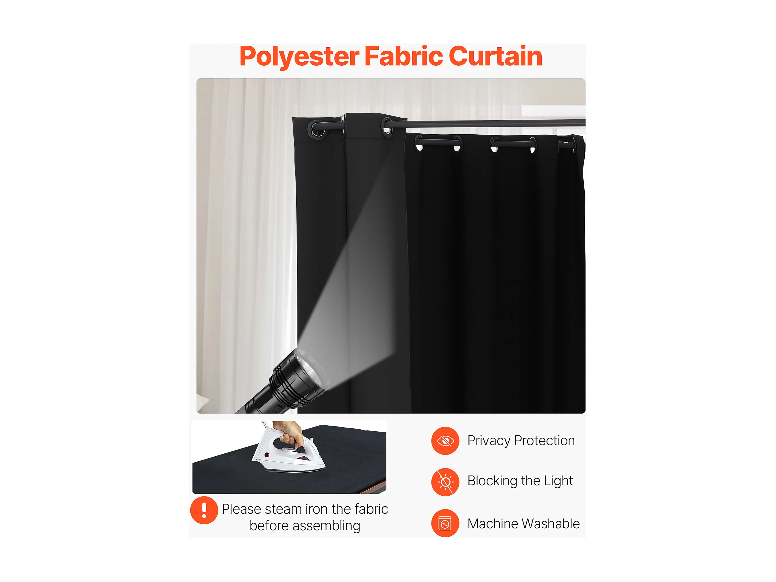 Doppelte Umkleidekabine SucceBuy, 200 x 100 x 200 cm, Tragbare Garderobe mit dicken Polyester-Vorhängen, Privater Bereich für Geschäfte, Boutiquen, Schwarz
