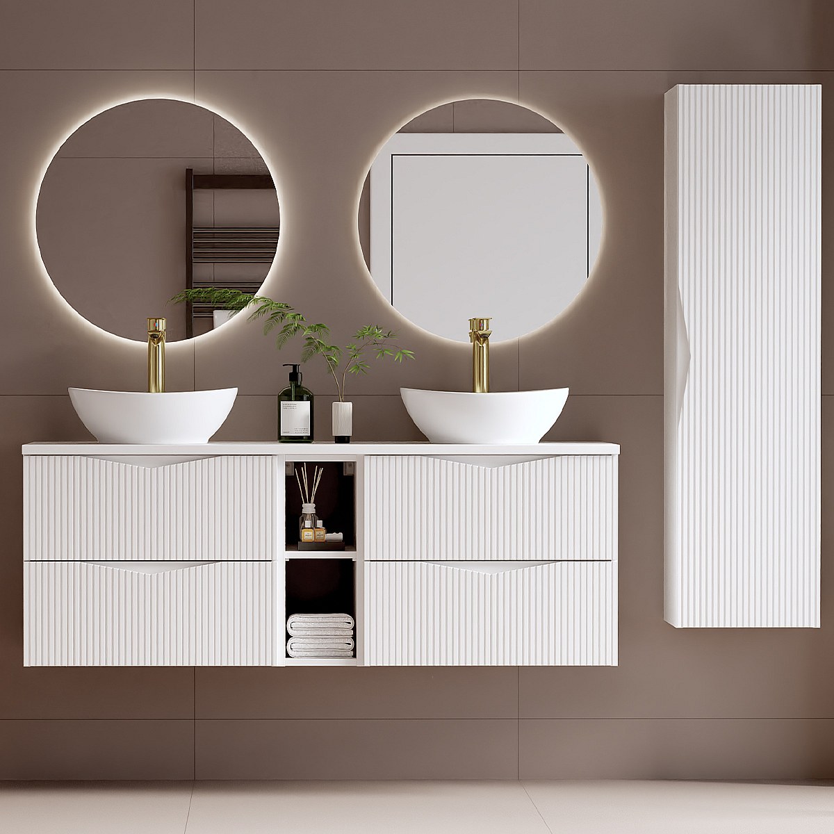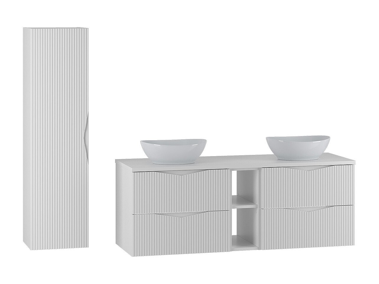 Doppelwaschtisch 140cm 2 Nischen und Säule Tao Weiß