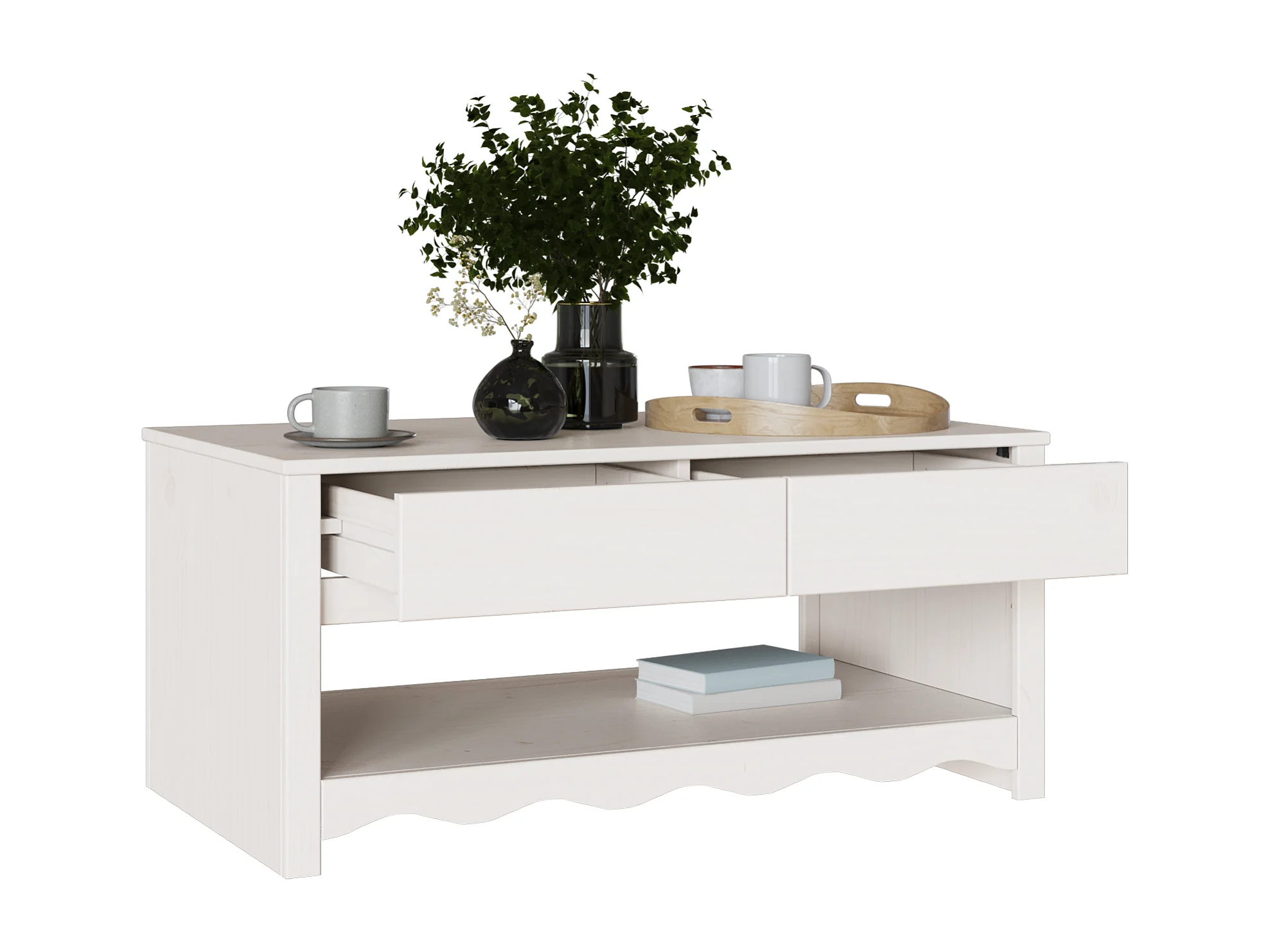 "DRAMMEN" Weißer Couchtisch 99x55x45 cm aus massivem Kiefernholz