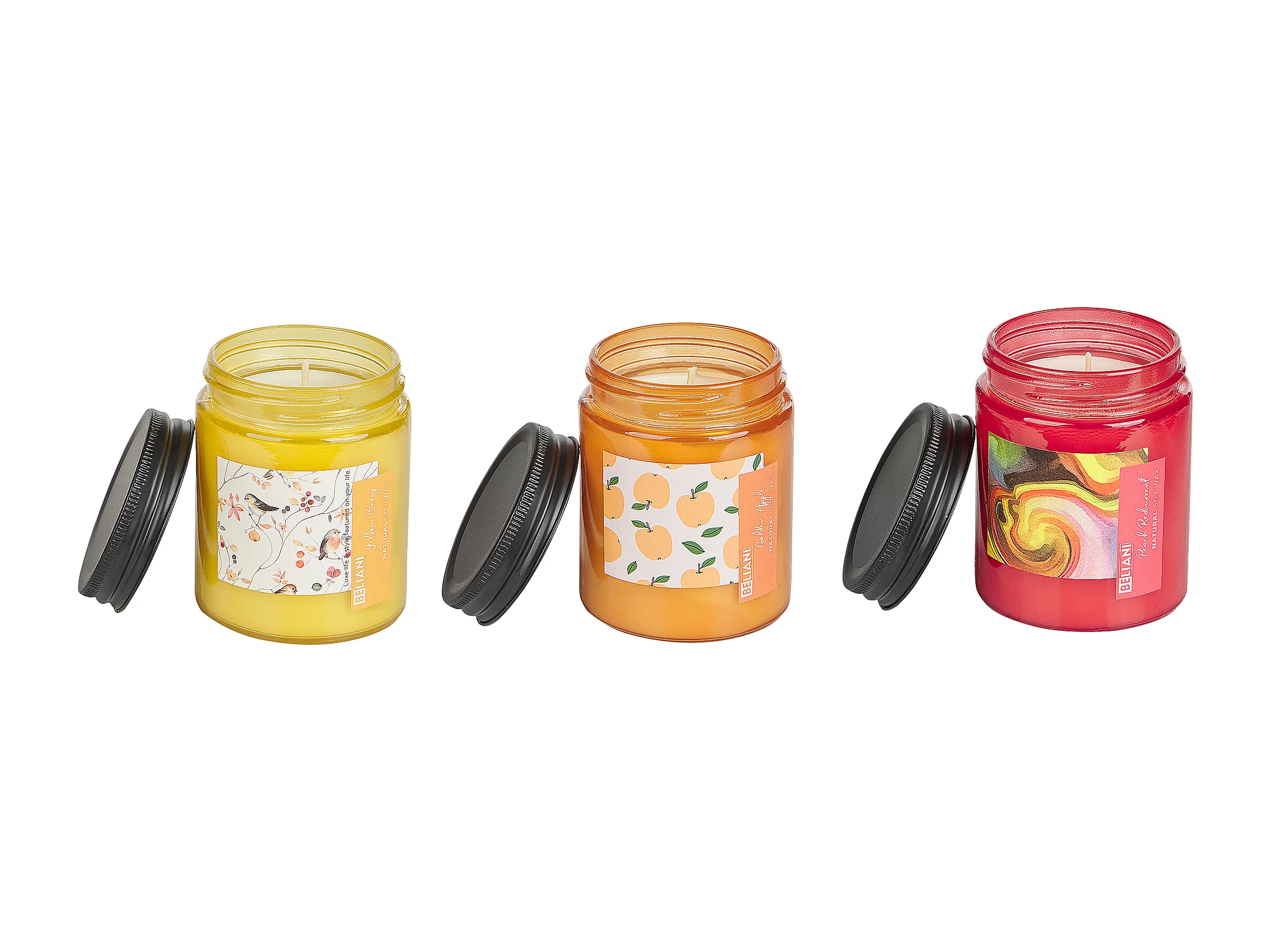 Duftkerzen 3er Set COLORFUL BARREL Sojawachs Frische Note Blumige Note