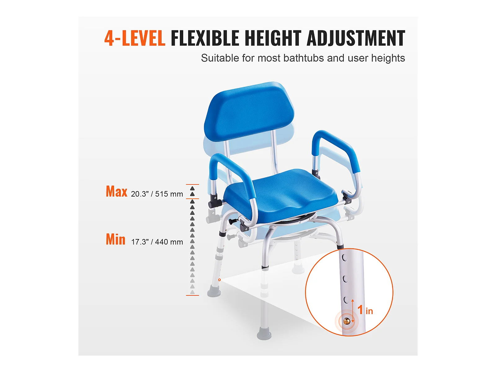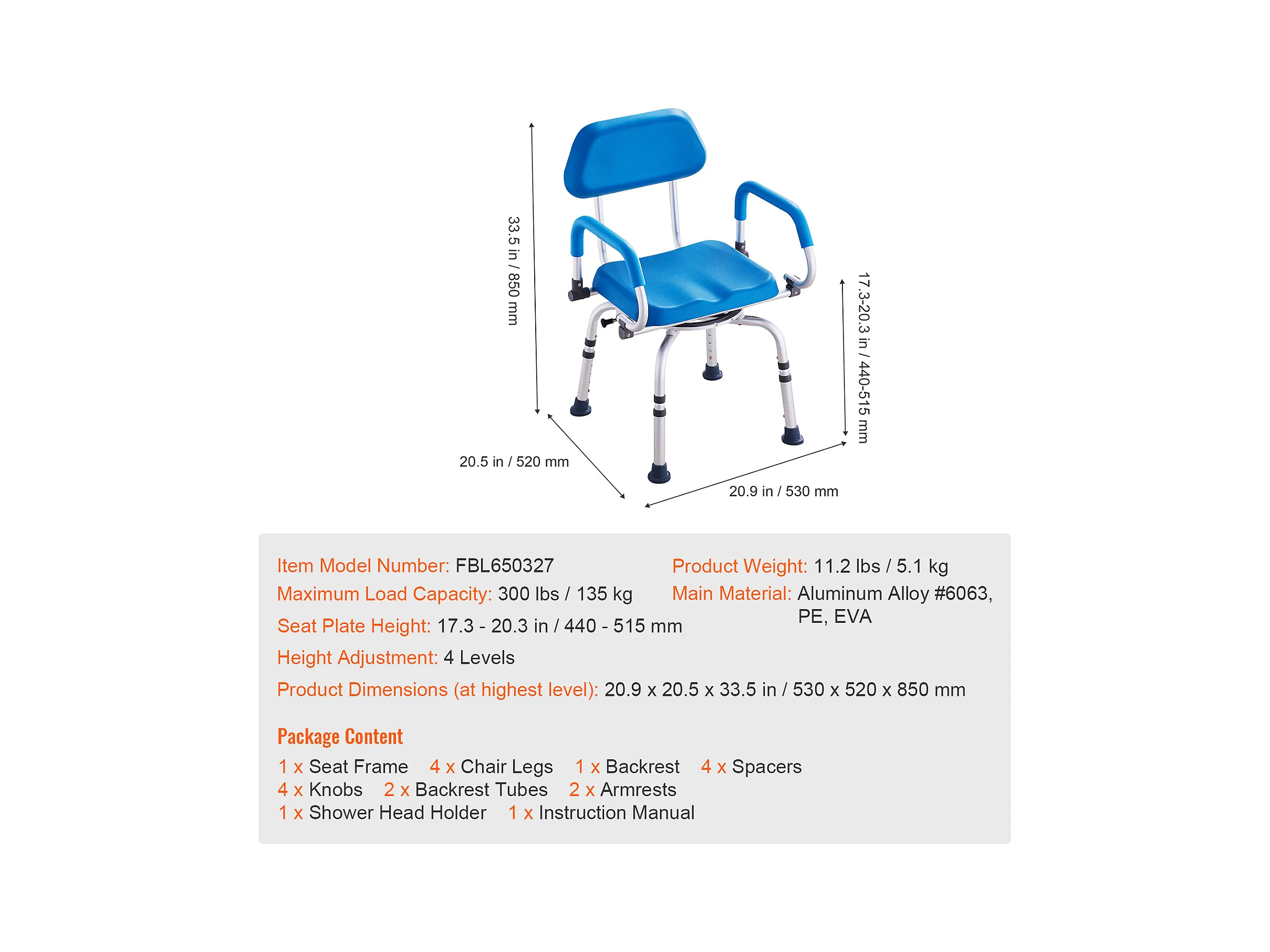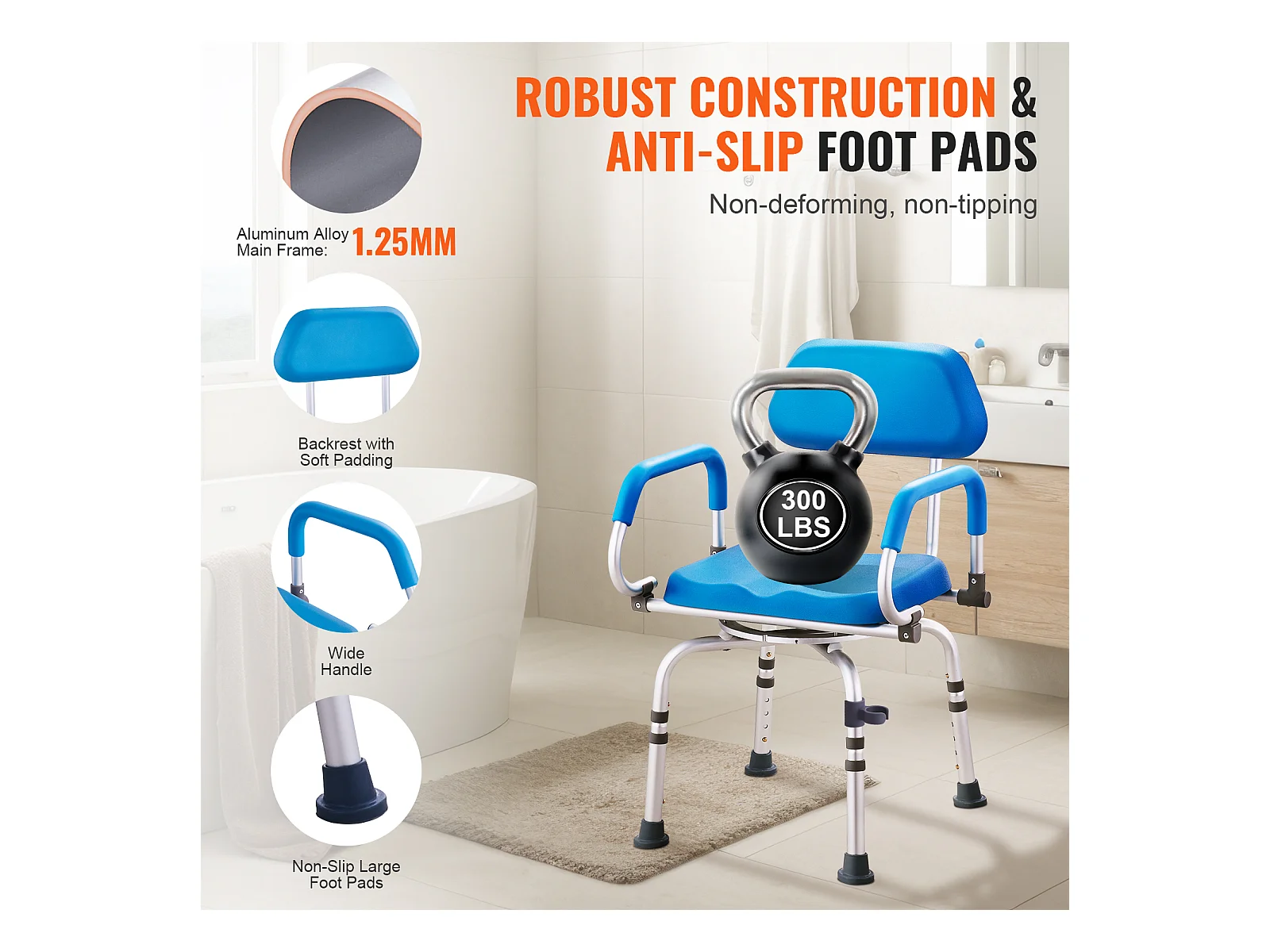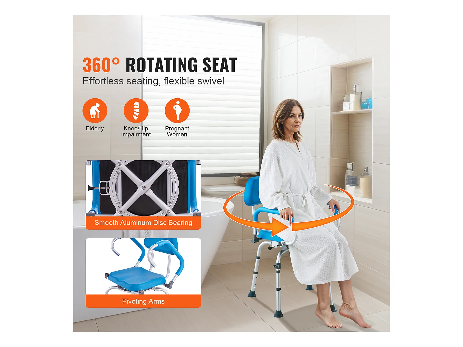 Duschhocker, SucceBuy Drehbarer Duschstuhl 360° mit Dreharmen und Gepolstertem Sitz, 135 kg