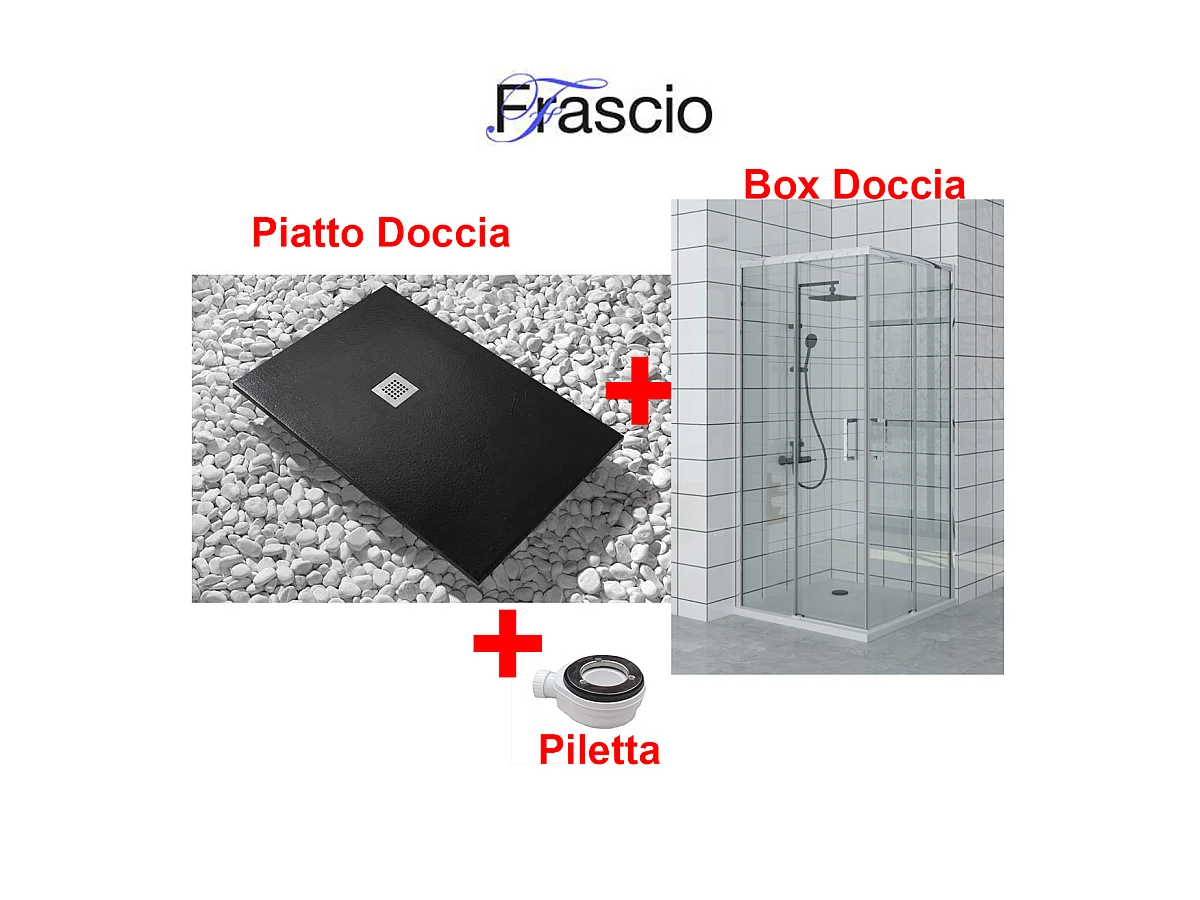 Duschwanne 100x120 cm Vulcano Line Extra Slim Schwarz + Duschbox 100x120 cm hoch 200 cm mit Ecköffnung