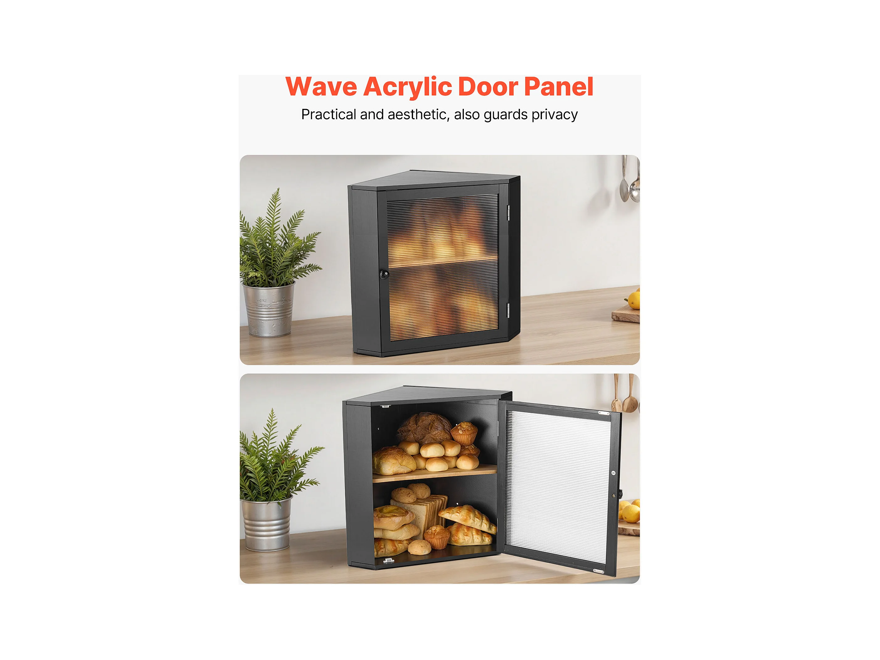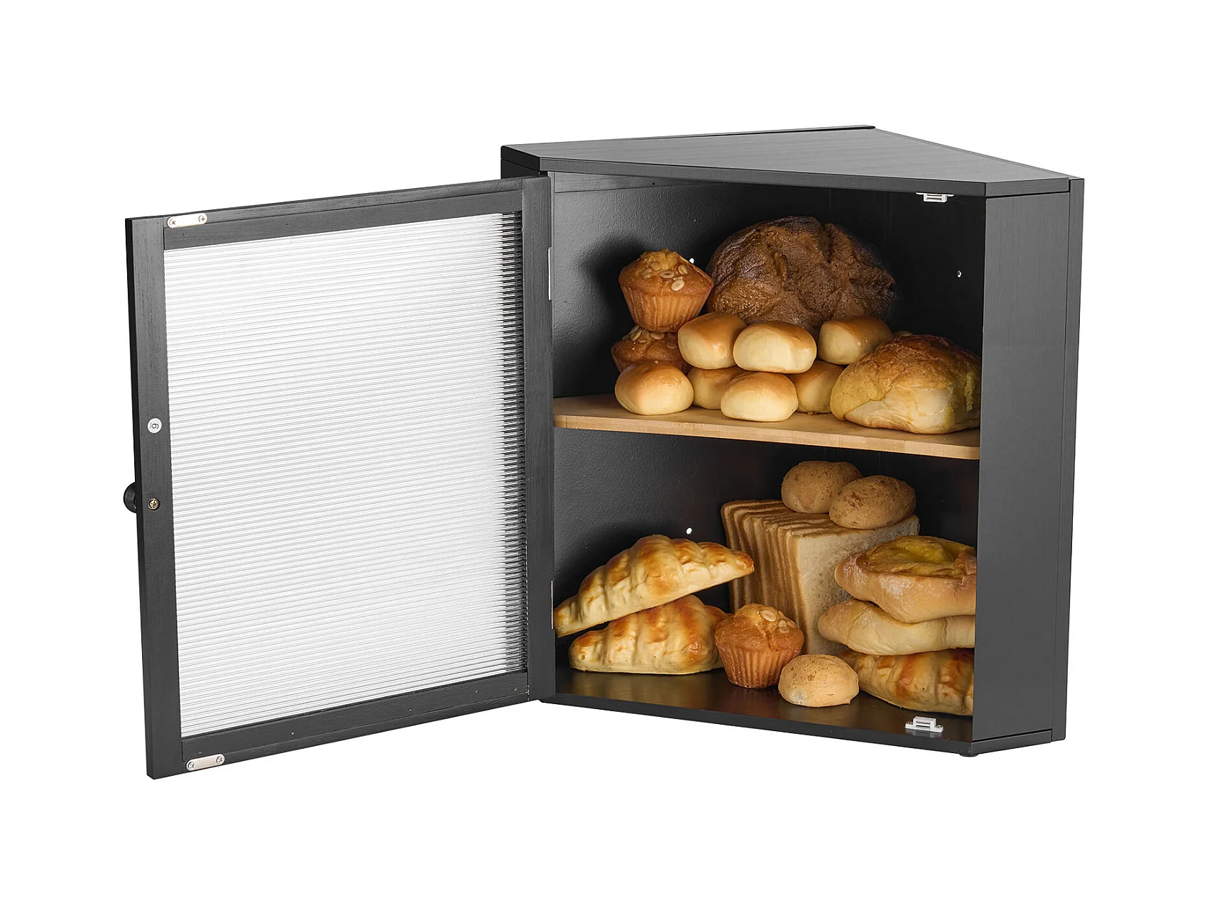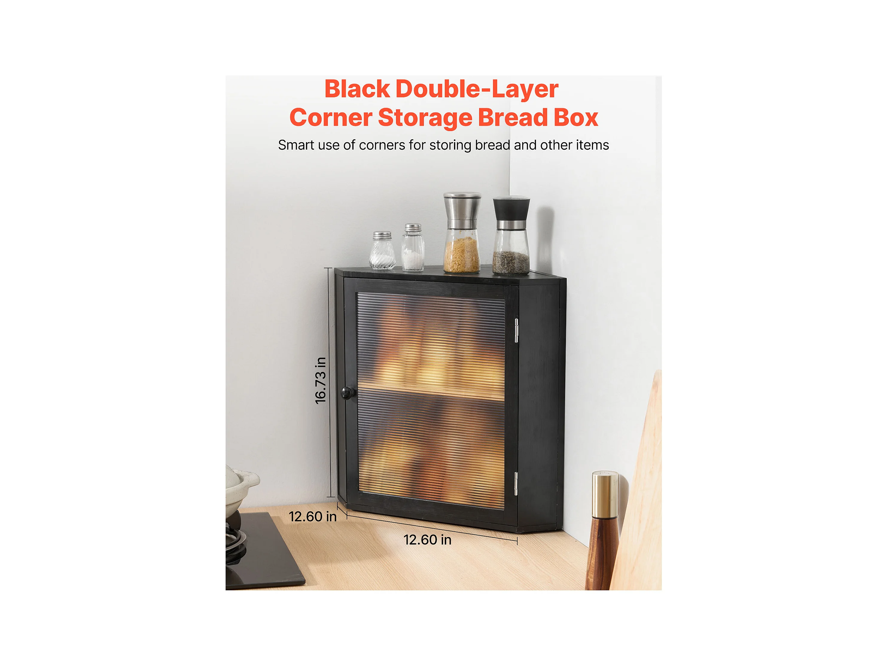 Eckbrotkasten SucceBuy 2-stufig für Küchentheke, Großer Aufbewahrungsraum mit Gewellten Acrylklappen, Rustikales Design, Schwarz