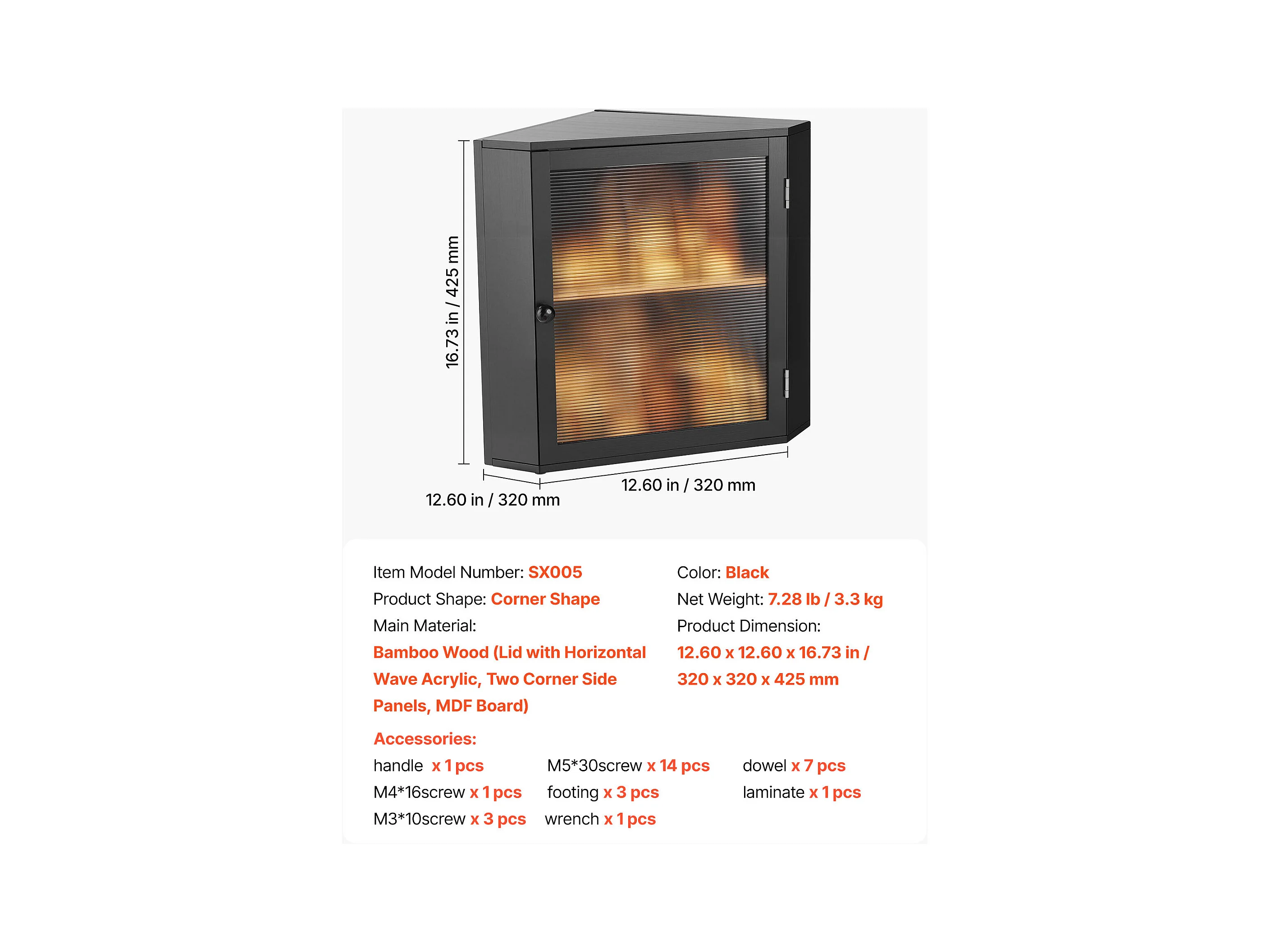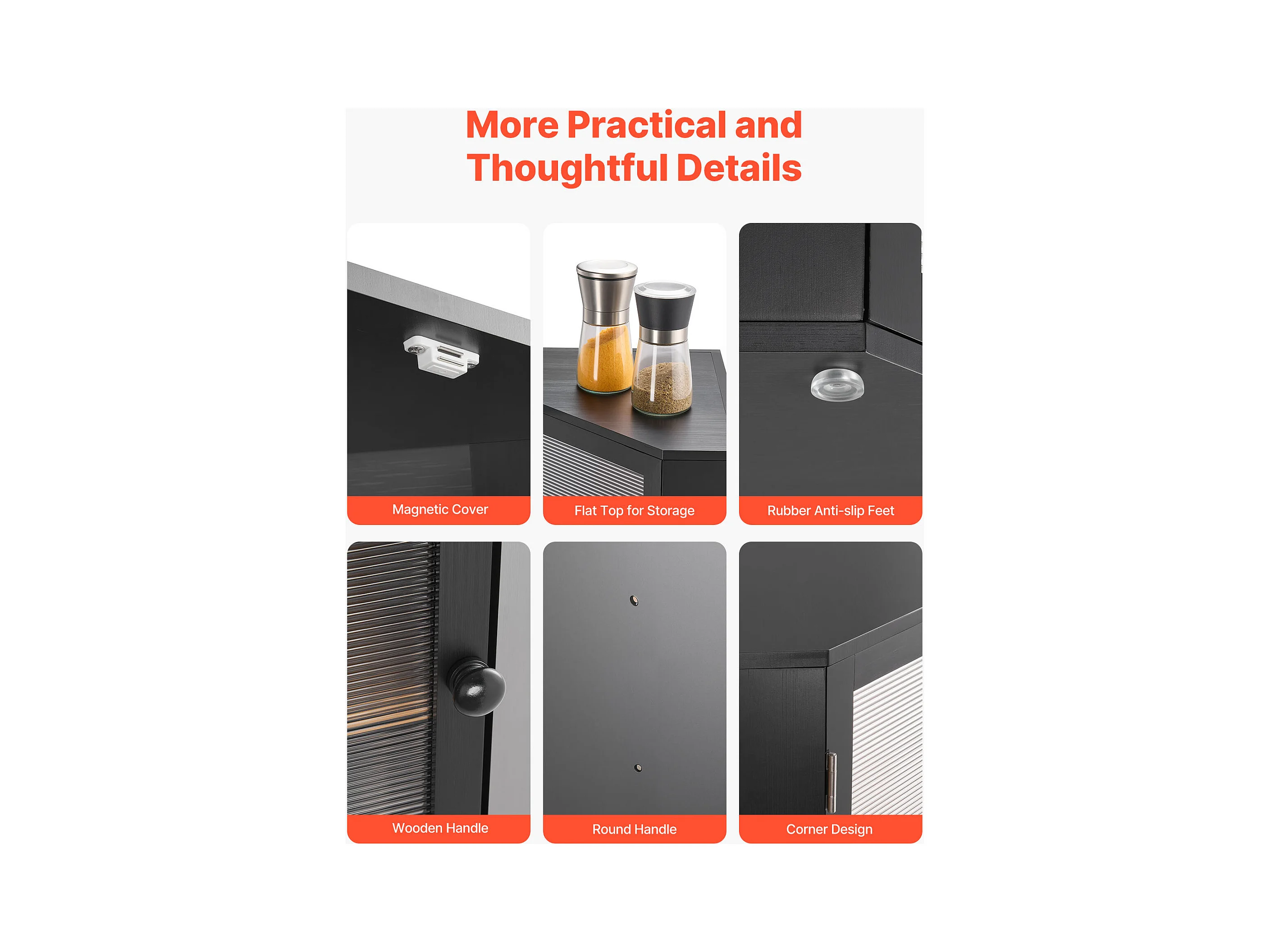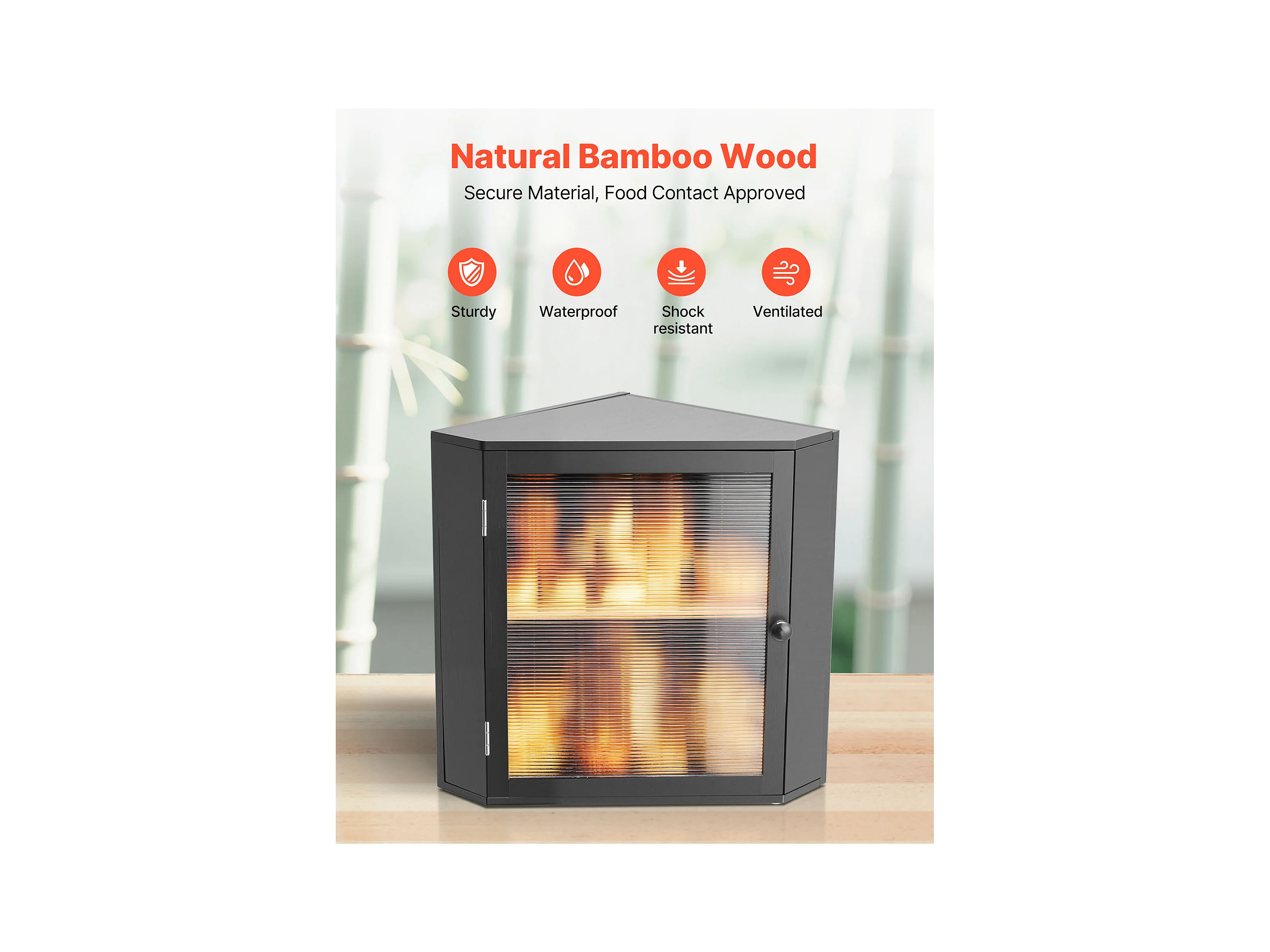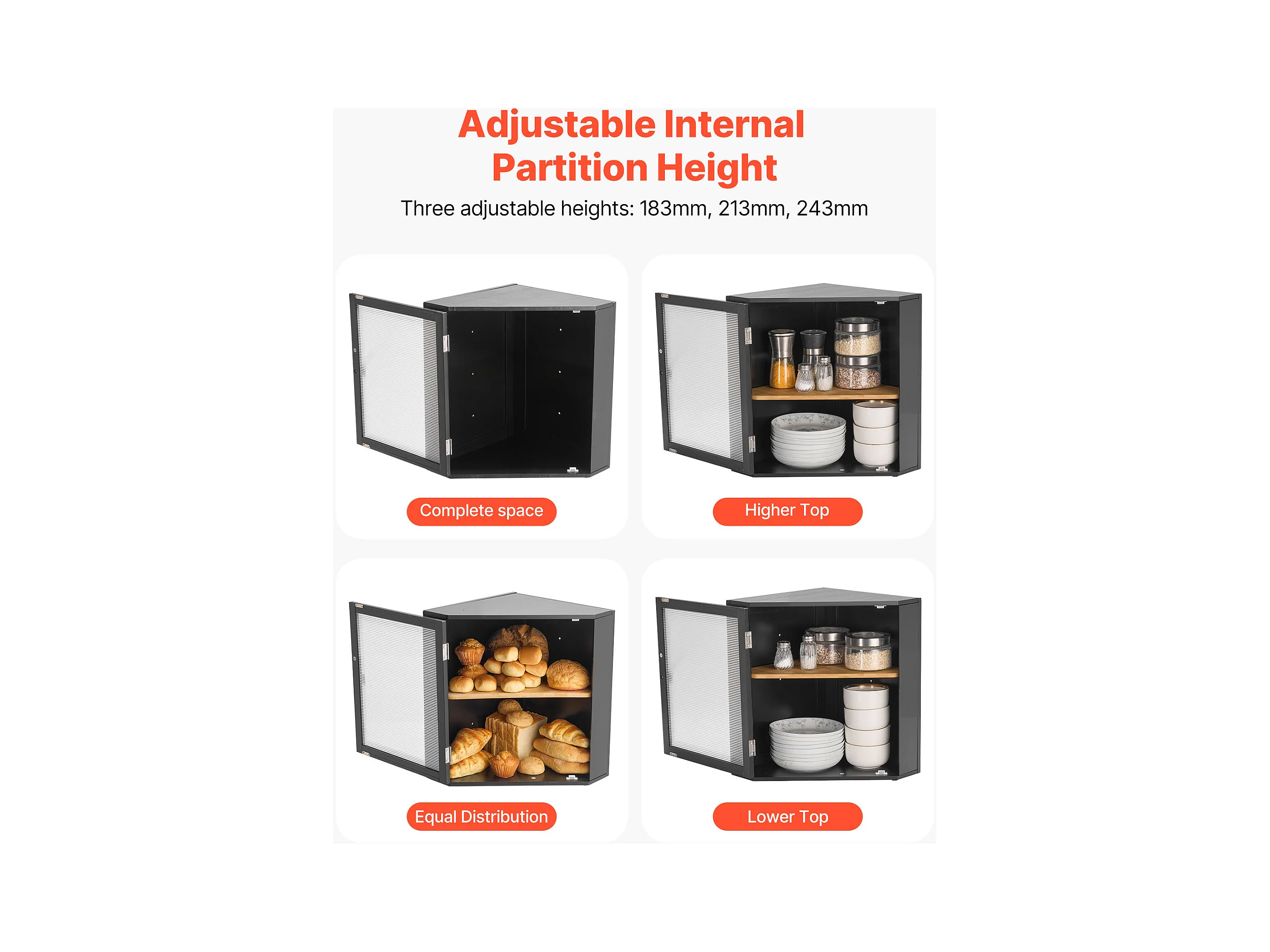 Eckbrotkasten SucceBuy 2-stufig für Küchentheke, Großer Aufbewahrungsraum mit Gewellten Acrylklappen, Rustikales Design, Schwarz