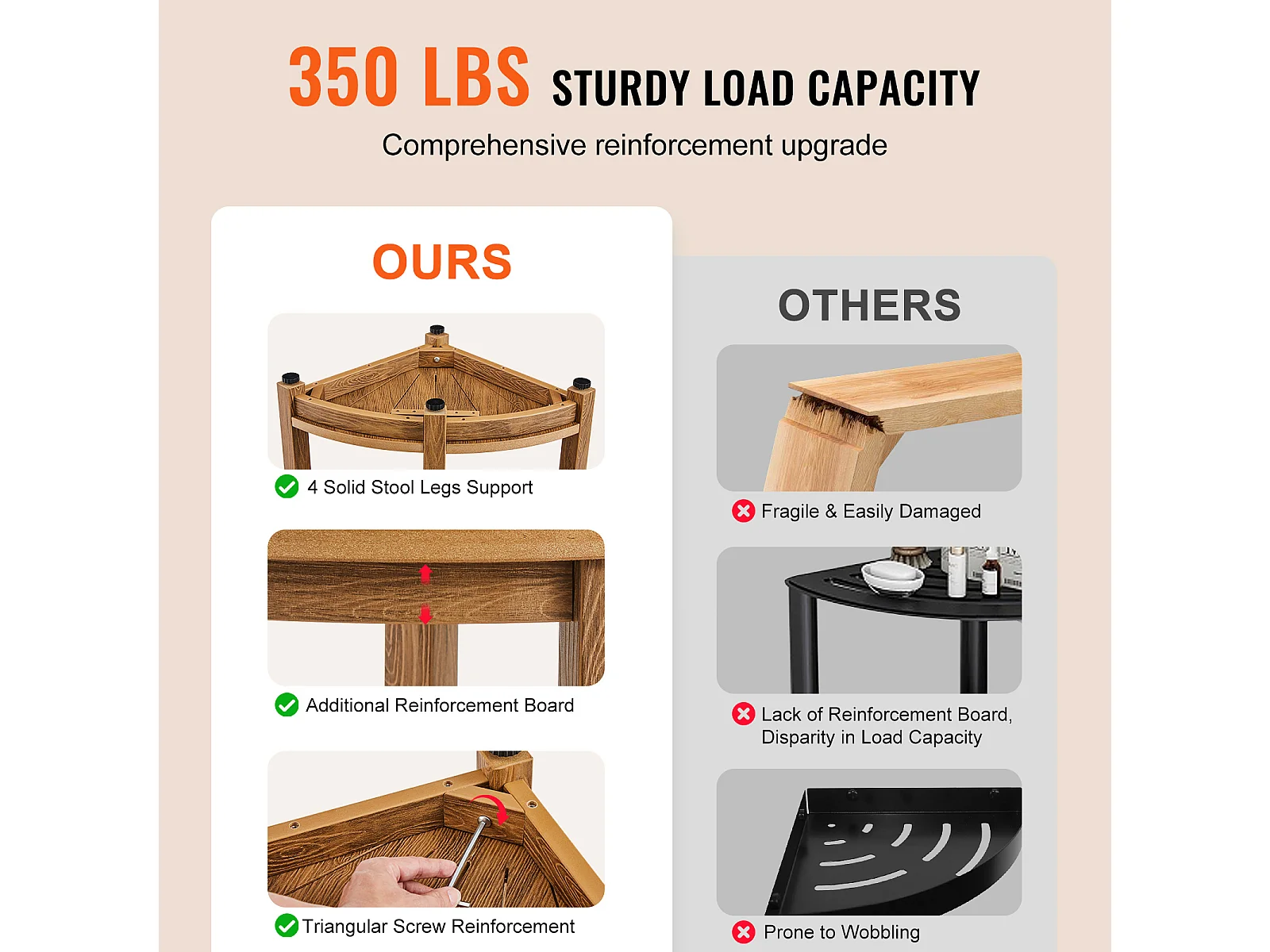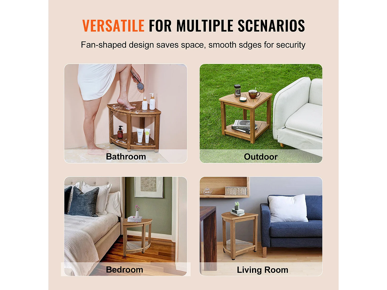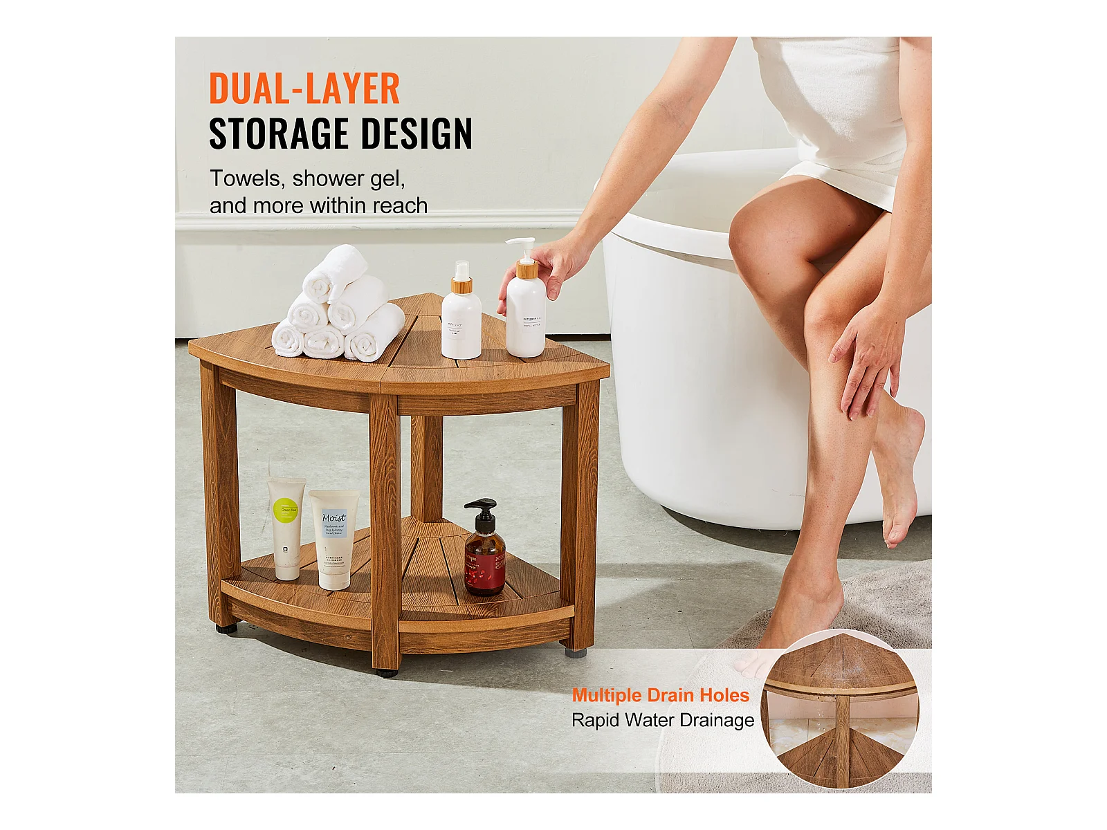 Eckduschbank SucceBuy aus Teakholz, 43 cm H × 30,5 cm R, Teakholz für Innendusche Badezimmer