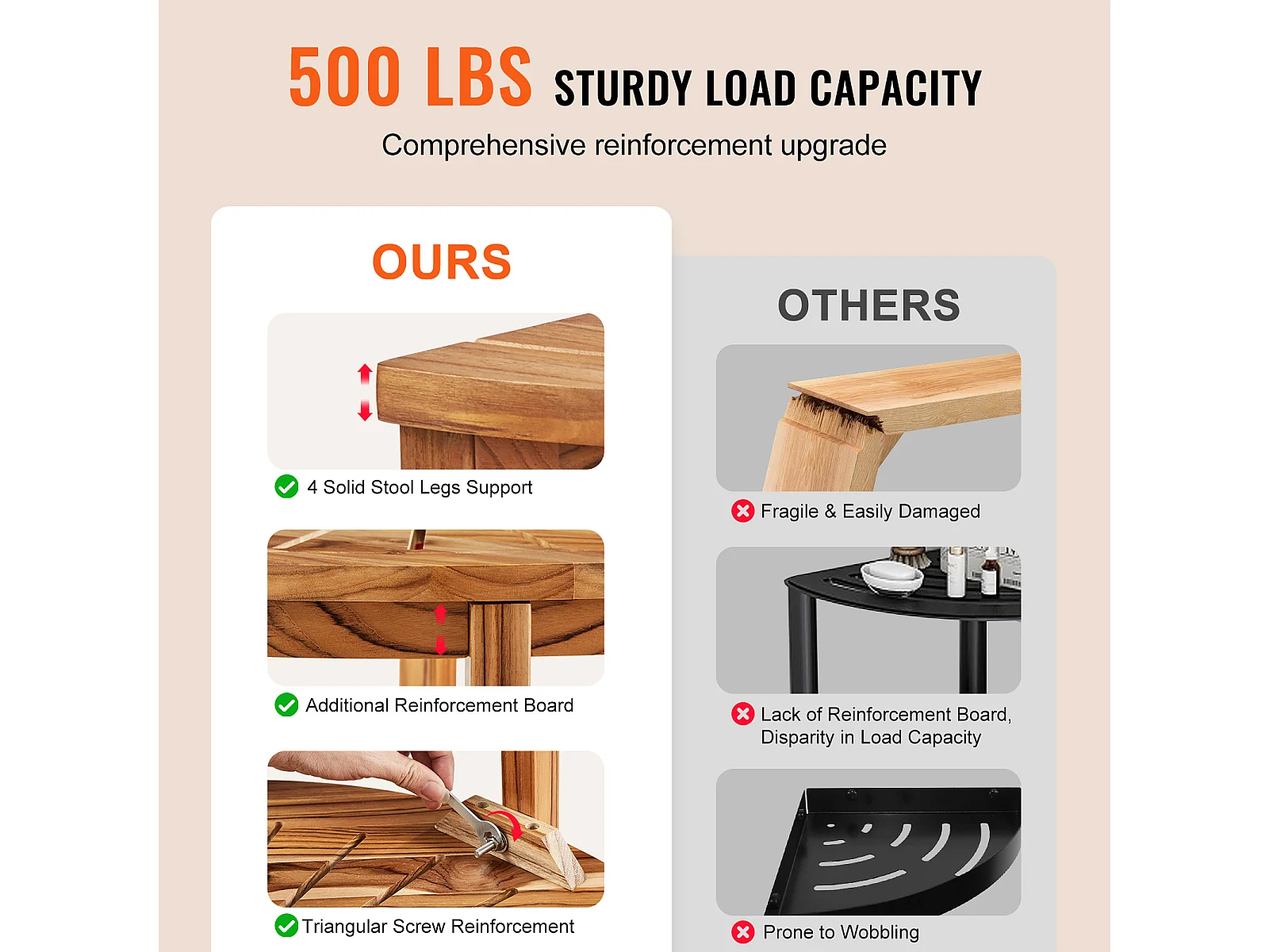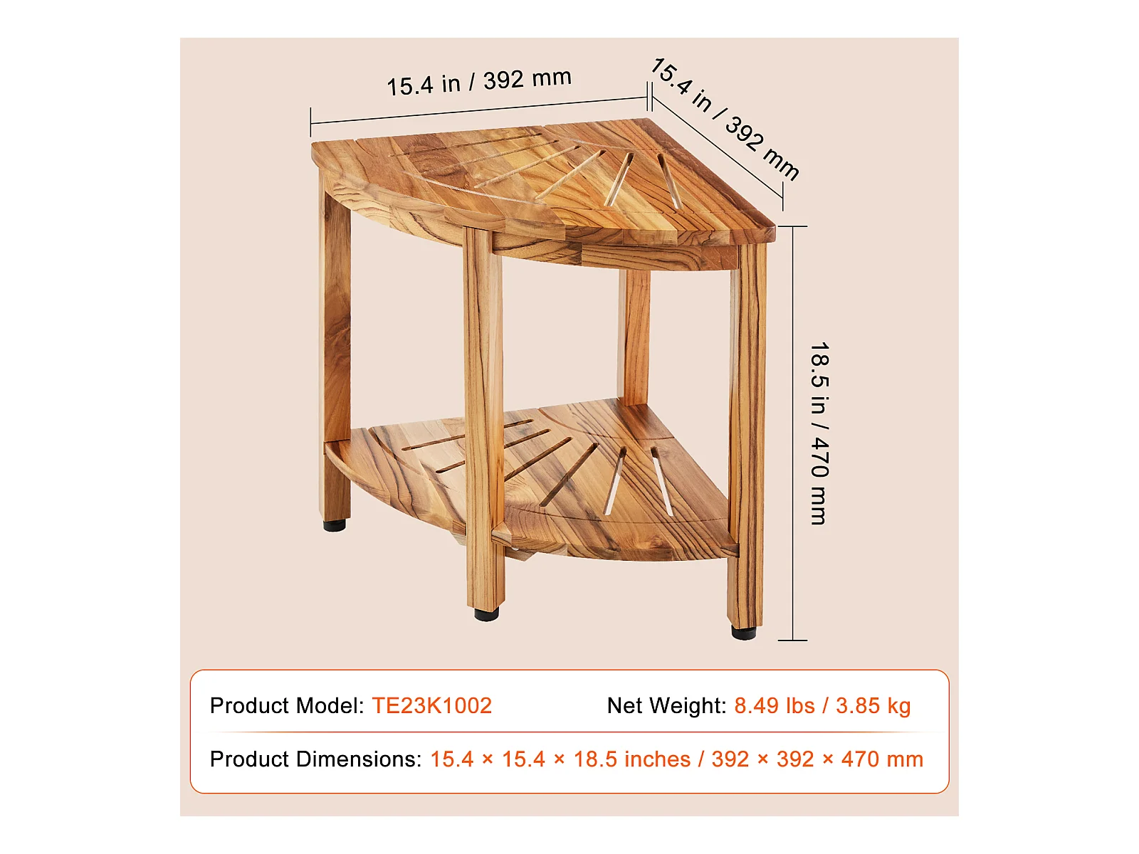 Eckduschbank SucceBuy aus Teakholz, 47 cm H × 39,2 cm R, Teakholz für Innendusche Badezimmer